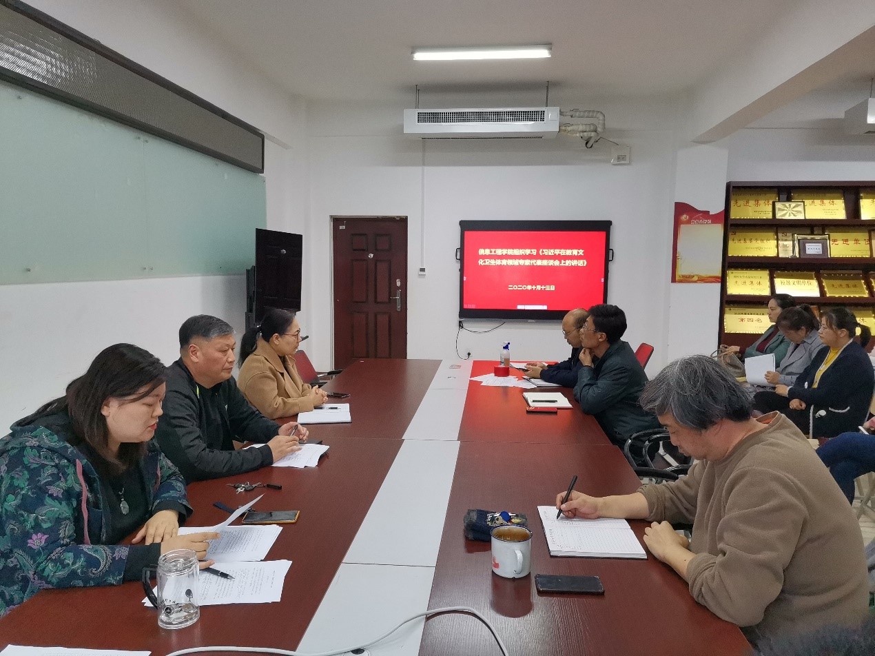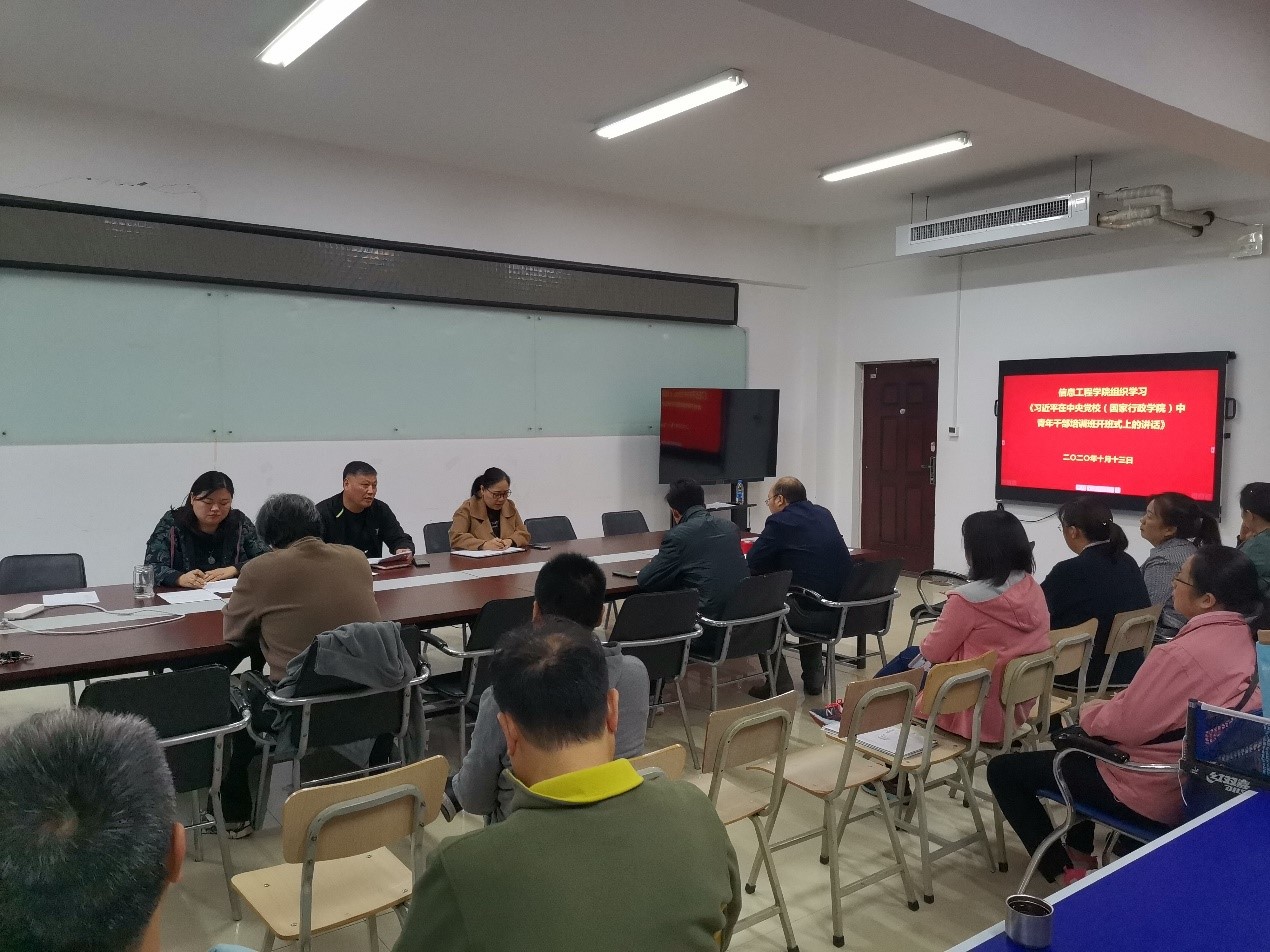 2020年10月13日信息工程学院组织全体教职工在SY5508开展政治学习。本次学习由党总支书记罗朝峰主持。