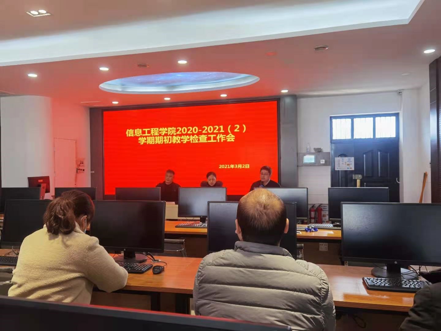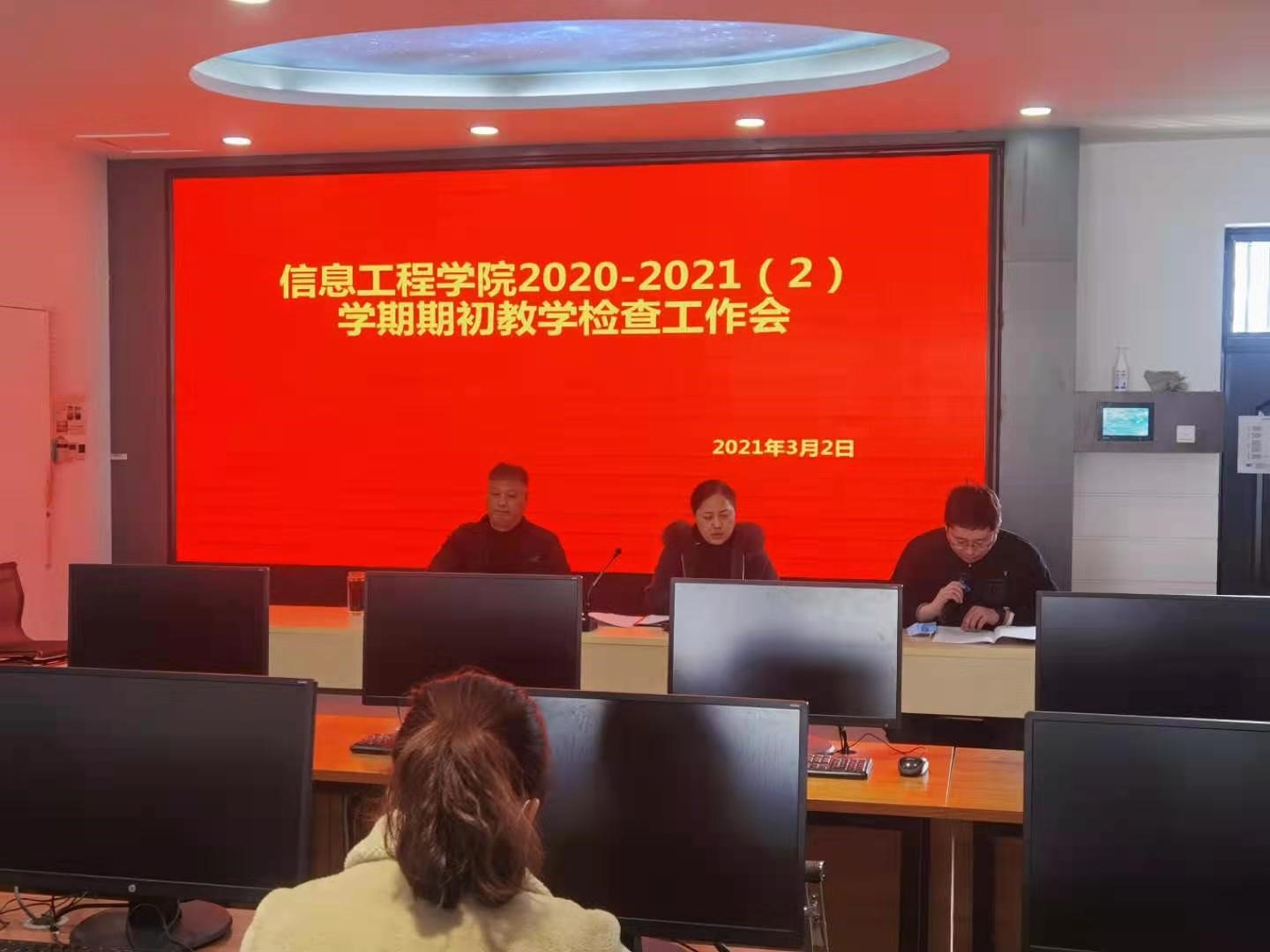 3月2日下午,信息工程学院在SY4405C召开2020-2021(2)学期期初教学检查工作会。党总支书记罗朝峰,院长丁爱萍,副院长曾赟出席会议,全体教职工参会。