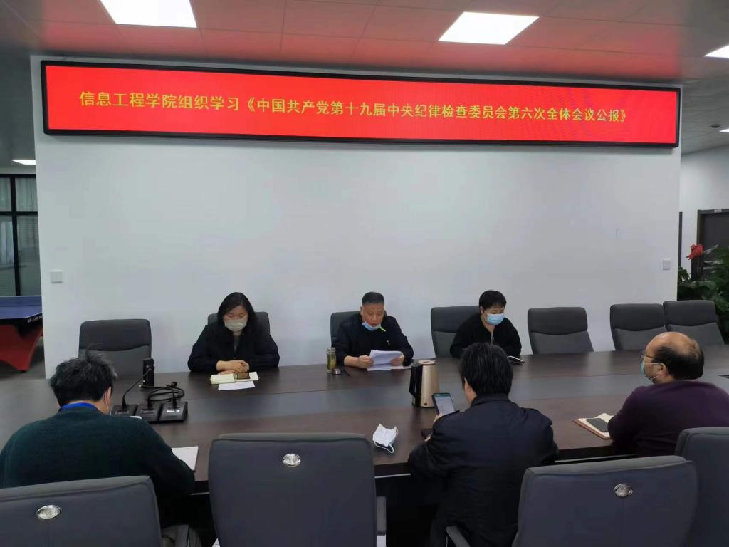 5月17日信息工程学院组织全体教职工开展政治学习,本次政治学习主要内容是学习和领会《中国共产党河南省第十一届纪律检查委员会第二次全体会议》、《中国共产党第十九届中央纪律检查委员会第六次全体会议》文件内容和会议精神。