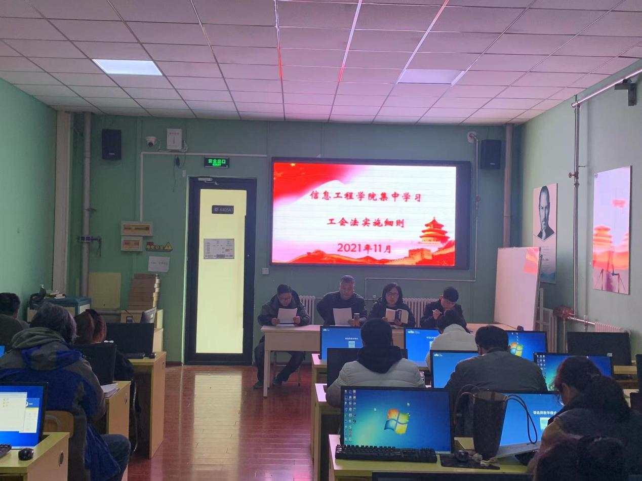 此次开展政治学习内容有《中华人民共和国工会法实施细则》、《工会基层组织选举工作条例》、《中国共产党基层组织选举工作条例》,先后由学院工会委员马海洲、学生党支部书记何昕和党总支书记罗朝峰分别带领同志们学习文件内容,领会文件精神。