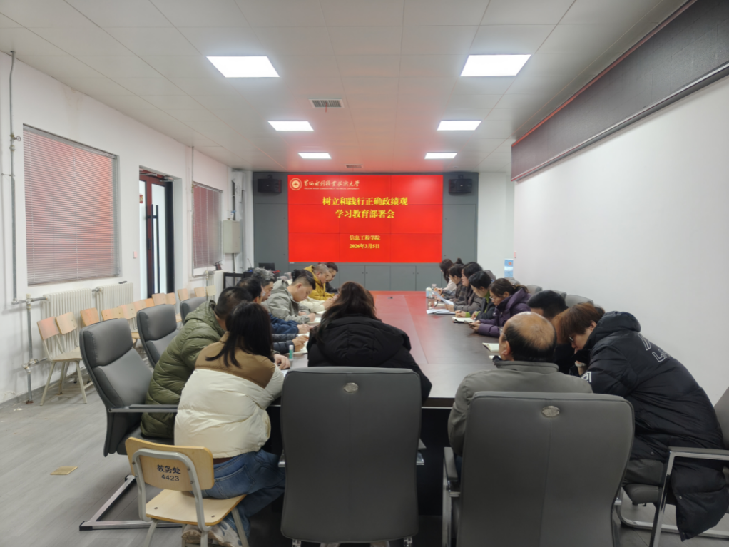 3月5日,信息工程学院在SY4426会议室组织召开党总支部委员会(扩大)会议,专题研究部署树立和践行正确政绩观学习教育。会议强调,要深刻认识开展此次学习教育的重要意义,准确把握正确政绩观的丰富内涵和实践要求,以高度政治自觉推动学习教育走深走实。学院党总支书记李晓娟主持会议,全体党总支委员、各党支部书记及科室负责人参加会议。会后,学院教工党支部和学生党支部分别召开专题会议,传达学习会议精神,结合各自工作实际制定具体实施方案,确保学习教育全覆盖、见实效。