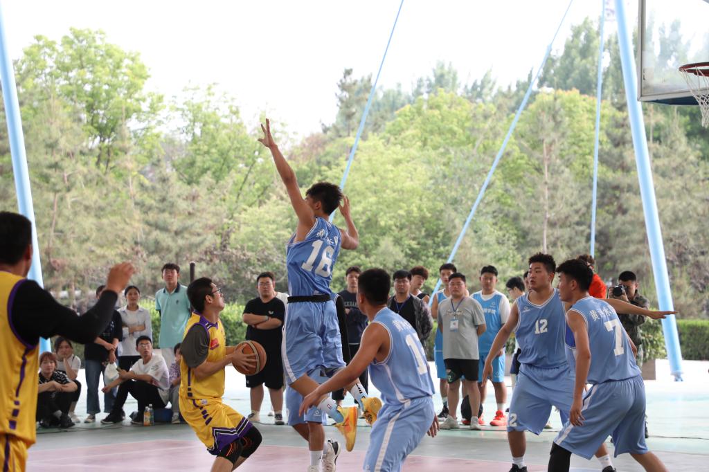 下半场易地再战,我校男篮在进攻时抓住机会,连续命中,以扎实的功底和较高的命中率技惊全场。随着比赛持续,部队球员作为军人的身体素质的优越性开始显现。随着比赛的进行,双方执着的体育精神和对篮球的热情随着激战的进行而愈演愈烈,比分在双方跑动传接中交替上涨。随着一声长哨,比赛结束,我校男篮以 50:39小胜部队篮球队。比赛结束后,双方队员进行了合影留念。