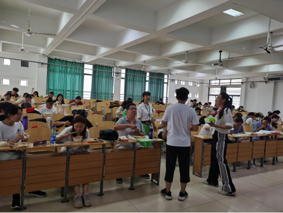 这些为了让学生及时吃上午餐的老师就是环境工程学院的学工人,他们顶着烈日、不辞劳苦把学生的盒饭从餐厅运往教学楼6202教室,既缓解了全校2000余名专升本学生集中用餐的压力,又为学生争取了午休的时间。为给特殊考生提供个性化服务,学院楚红英、申森、王海烽、崔鹏、王雪平等老师也加入到爱心送考服务队中。正是由于老师们的辛勤付出、无私奉献,学生们才能够顺利准时奔赴考场。老师们用实际行动诠释了服务育人关爱学生的真谛,给学生上了一堂生动爱的教育课程。