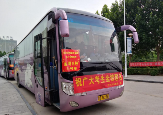 6:30,学院党总支副书记曾宝亭带领辅导员王恺、马琳娜来到学生宿舍楼组织学生前往食堂就餐。7:30,王恺带领学生们乘坐学生工作部统一组织的大巴车准时出发,奔赴考场。12:20,学生们乘坐大巴车从考场返回学校,一下车就直奔环境工程学院学生餐厅——教学楼6202教室用餐。当学生们从大汗淋漓的老师们手里接过午餐时,千言万语化为一句朴实的“谢谢老师!”。13:20,大巴车载着学生们继续奔赴考场,当看到学生们隔着车窗频频挥手时,在场的老师们顿觉甜蜜如泉涌。