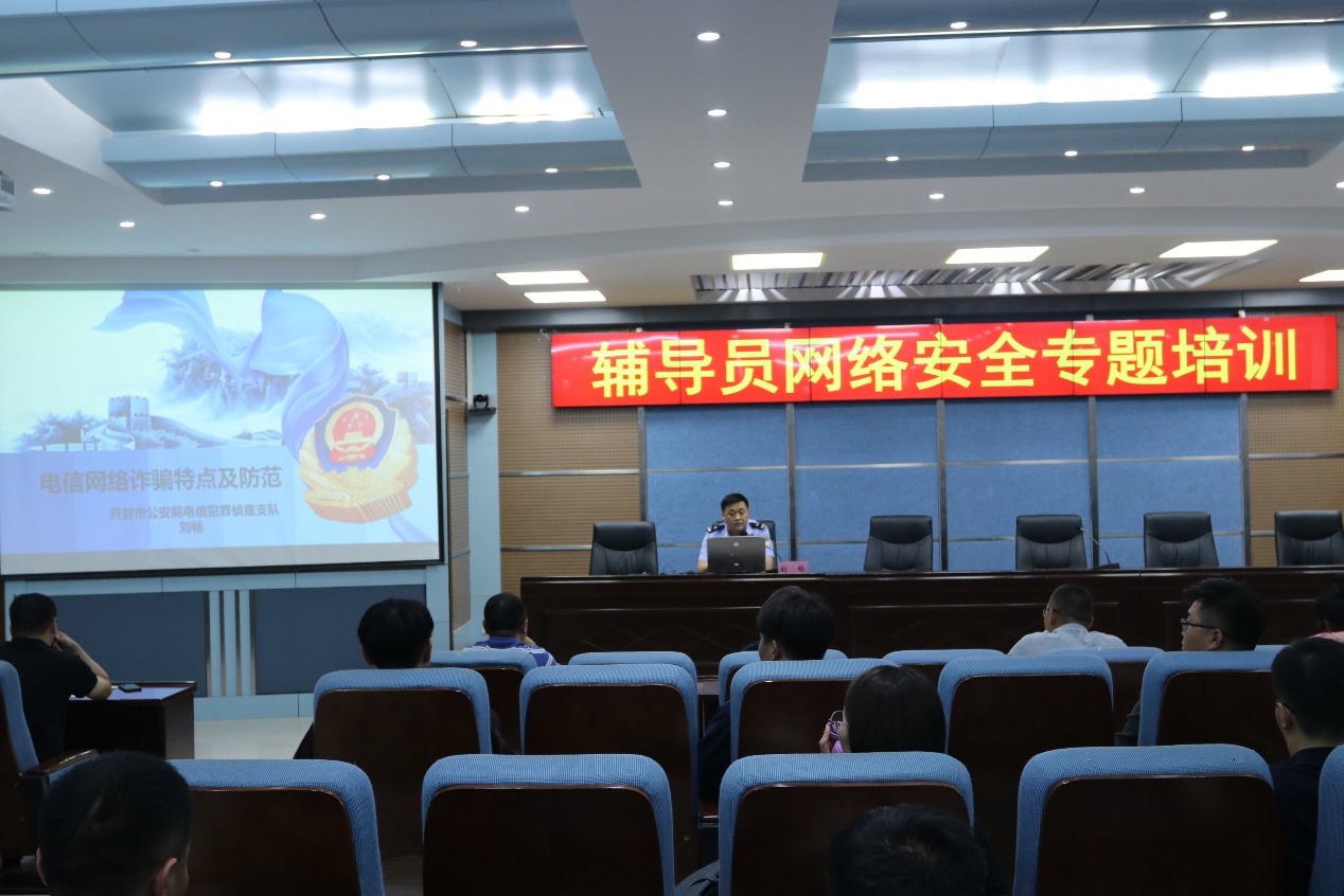 本次培训邀请了开封市公安局电信诈骗犯罪侦查支队三大队大队长刘畅做讲座,刘警官以《电信网络诈骗特点及防范》为主题,结合典型案例和视频资料详细介绍了电信诈骗的危害、电信诈骗的常用工具、电信诈骗的8大手段及应对策略、针对大学生诈骗的预防对策等,使全体学工人员对新型电信诈骗手段、危害及预防有了更深入的认识和了解。