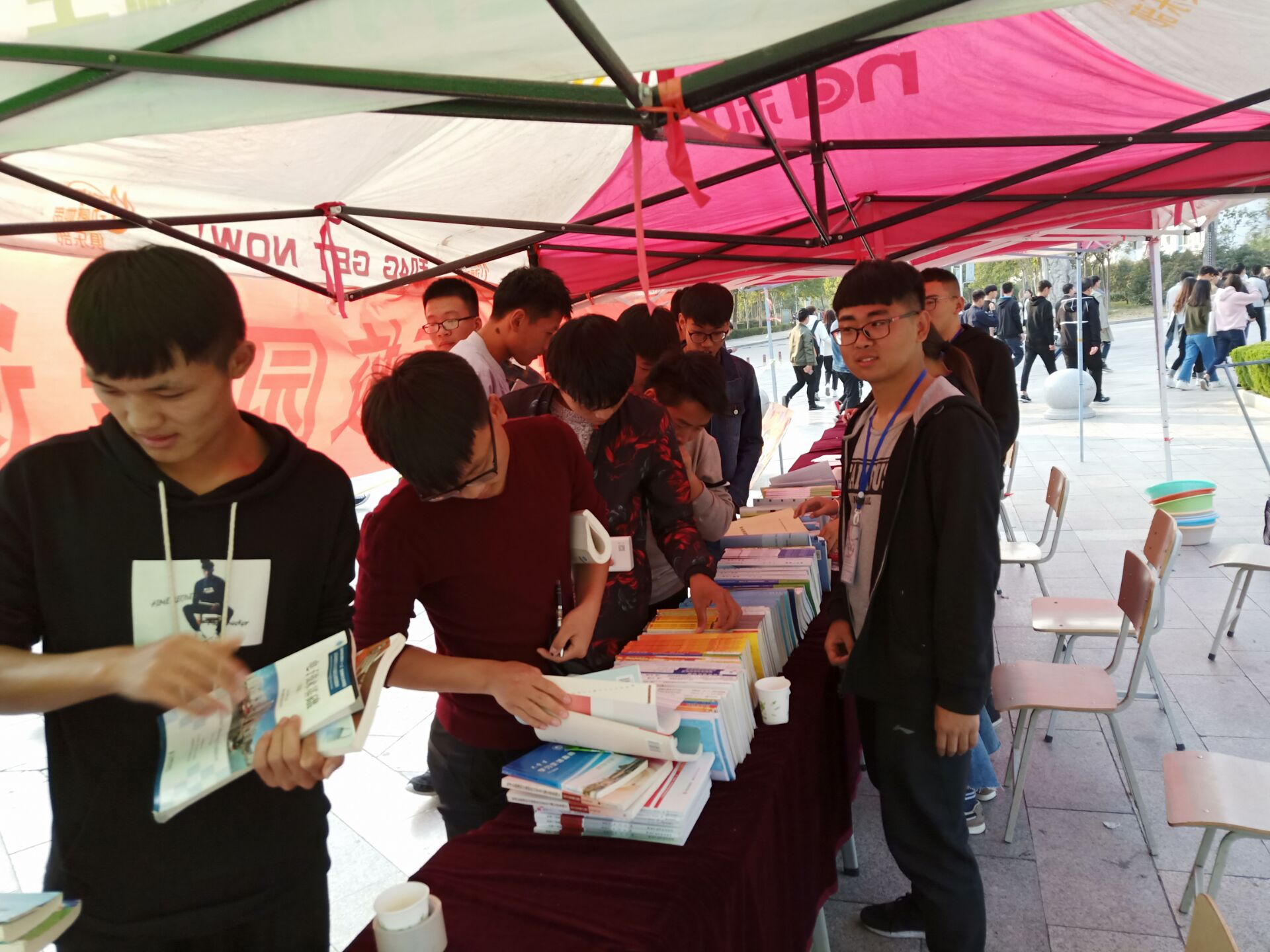 2018年10月24日上午,在青年大道思源石前学生们翻阅着手中的书,脸上洋溢着灿烂的笑容。在这里,校诚信自强联合会开展了“爱心赠书,知识共享”赠书活动。