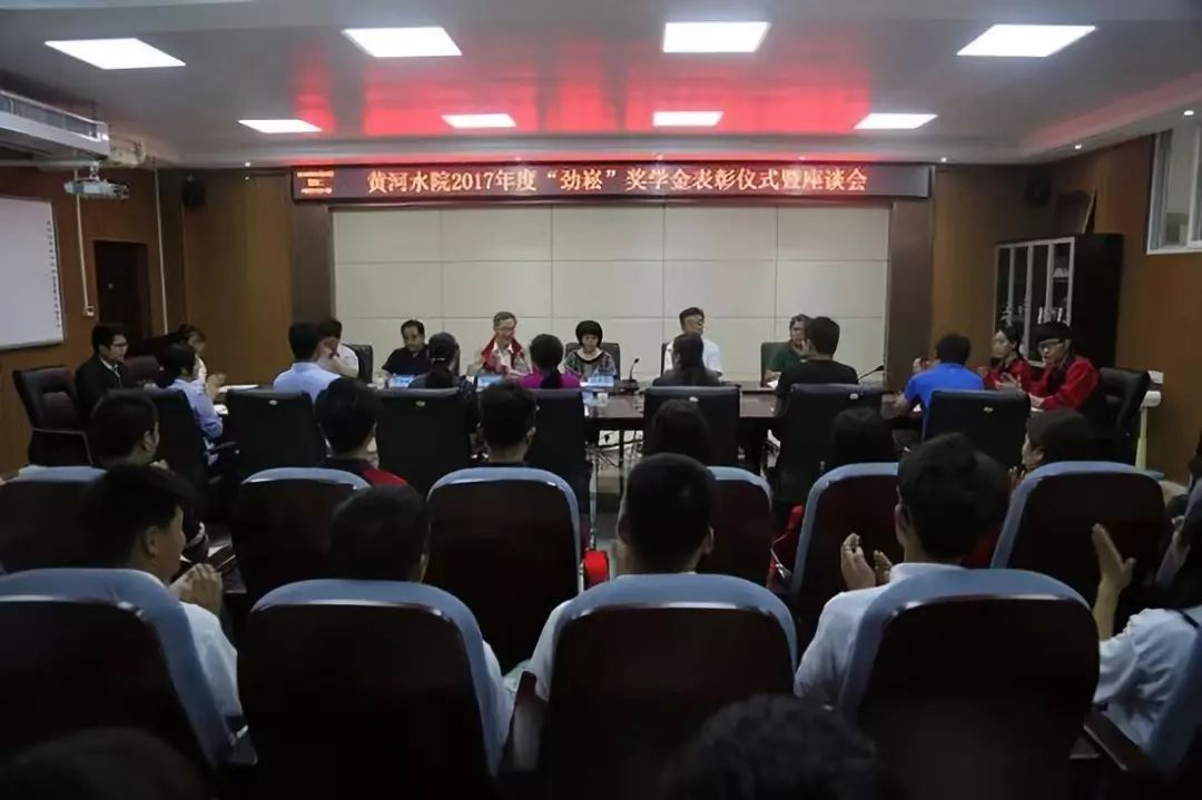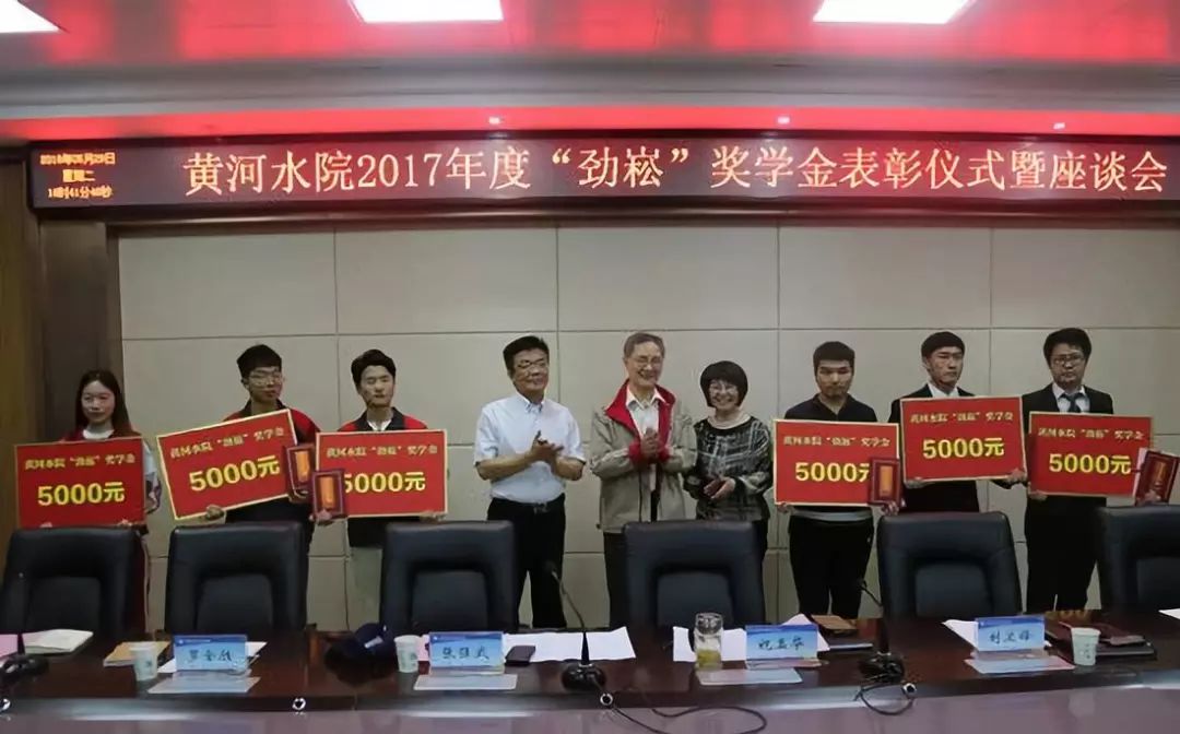 刘卫锋宣读《黄河水院2017年“劲崧”奖学金表彰决定》,校领导和张强武老师分别为获奖的图学类三名学生、力学类三个团队颁发了荣誉证书和奖金等。