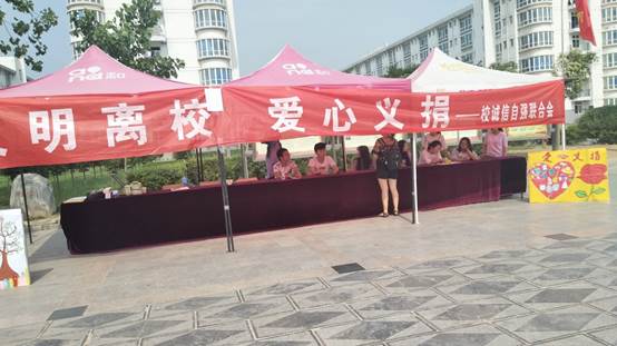 为帮助2018届毕业生将自己的博爱之心传递给贫困学子,提供一个的爱心传递的渠道,实现生活、学习等物品的可持续利用,我校于2018年6月7日在青年大道保卫亭旁举办了“文明离校、爱心义捐”活动,此次活动由学生资助管理中心主办,校诚信自强联合会承办。