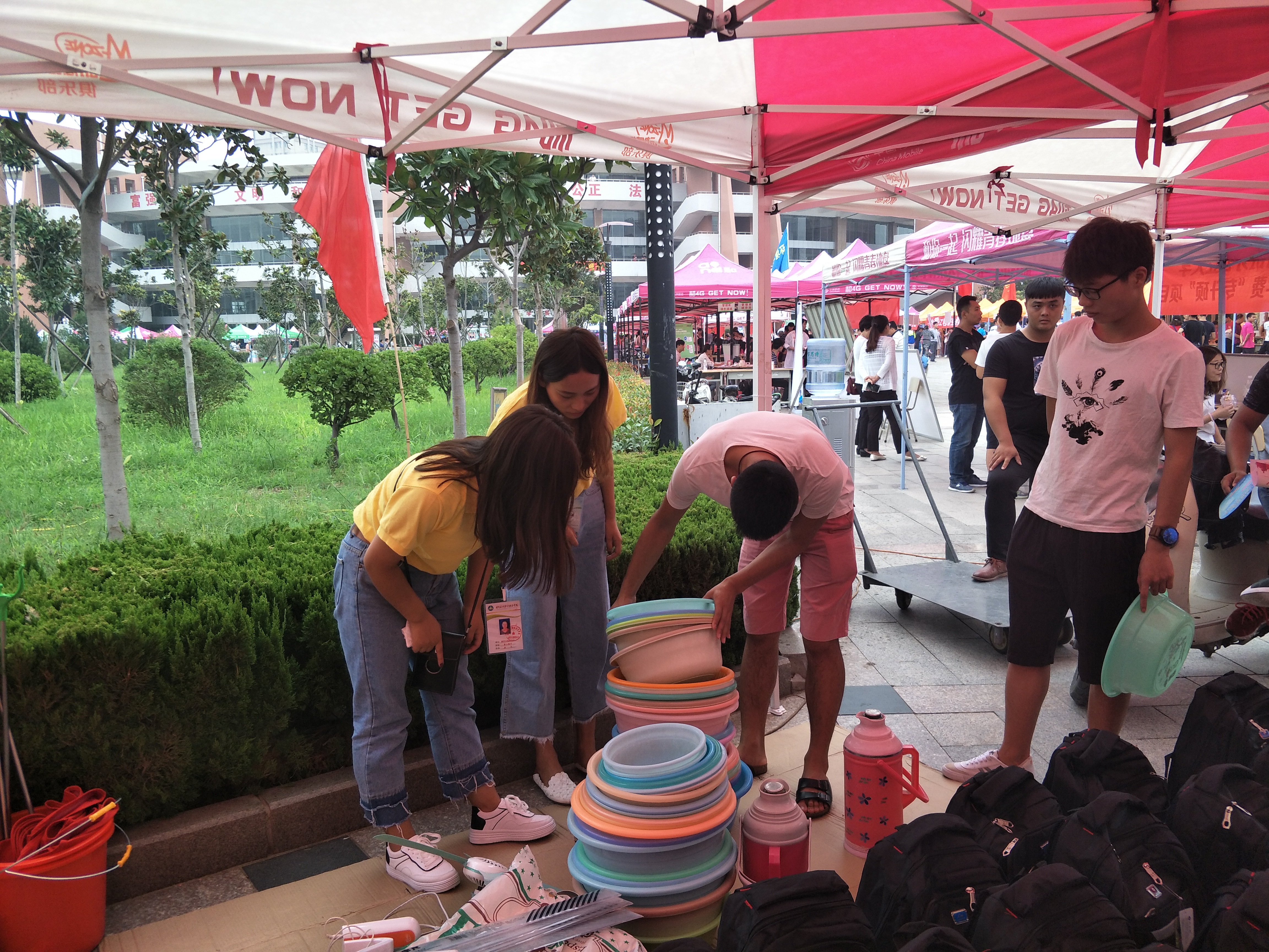 我校学生资助管理中心在新生接待处设立“新生入学绿色通道”、“资助政策咨询处”和“爱心超市免费物品发放”,通过“绿色通道”办理入学的家庭困难新生,可免费领取一份“爱心大礼包”,里面物品齐全实用,有书包、快餐杯、水杯、牙刷、牙膏、香皂、毛巾、洗衣液、衣架等,同时也可在“爱心超市”挑选暖瓶、盆、画板、衣服、背包等物品,免费领取。