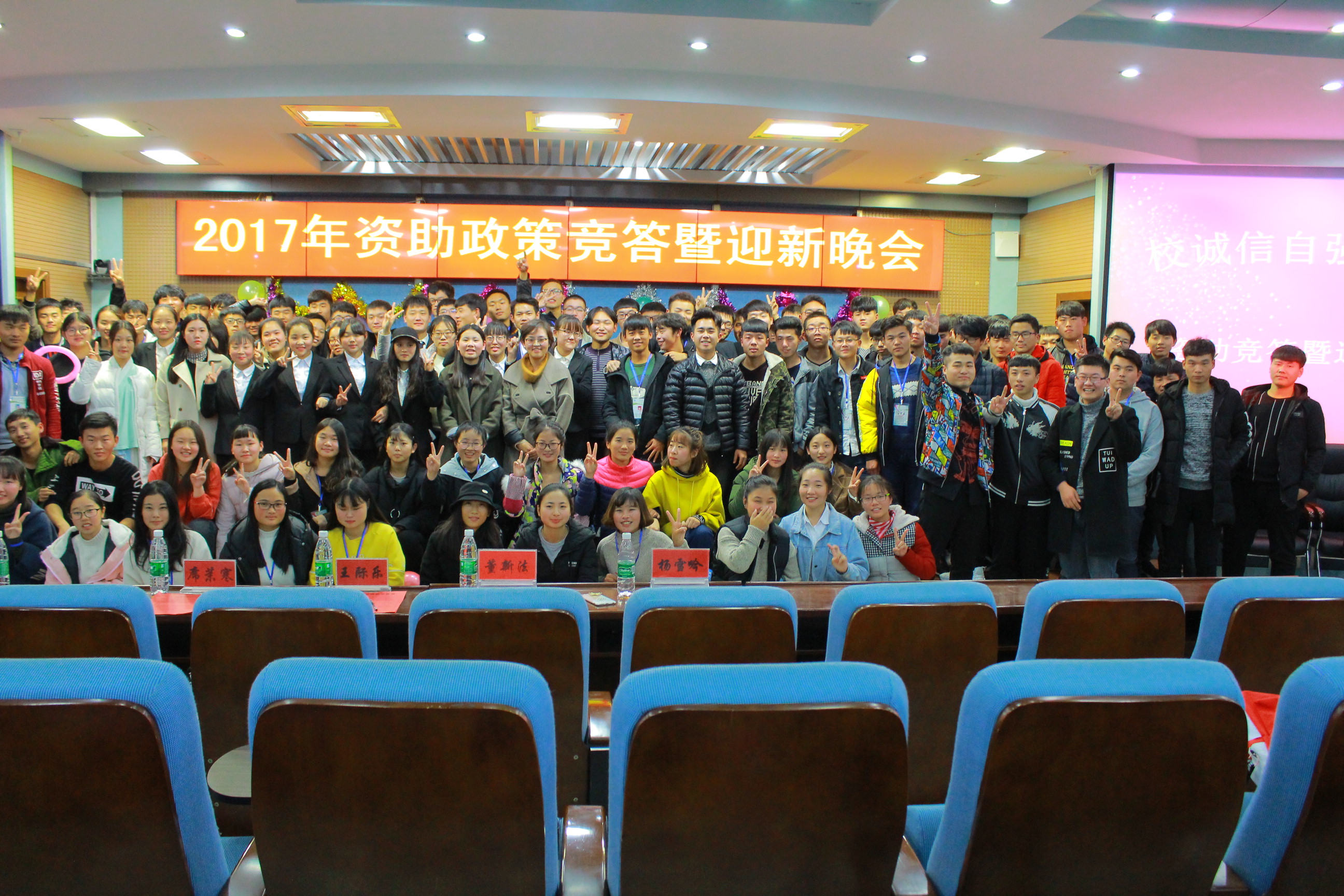 我校诚信自强联合会于2017年11月25日在3号实训楼学术报告厅成功举办2017年资助政策竞答暨迎新晚会。出席此次活动的有学生资助管理中心科长董新法老师、学生资助管理中心杨雪吟老师、校诚信自强联合会主席王际乐、校自律会主席席茉寒、各院系学生资助助理及诚信自强联合会全体委员。