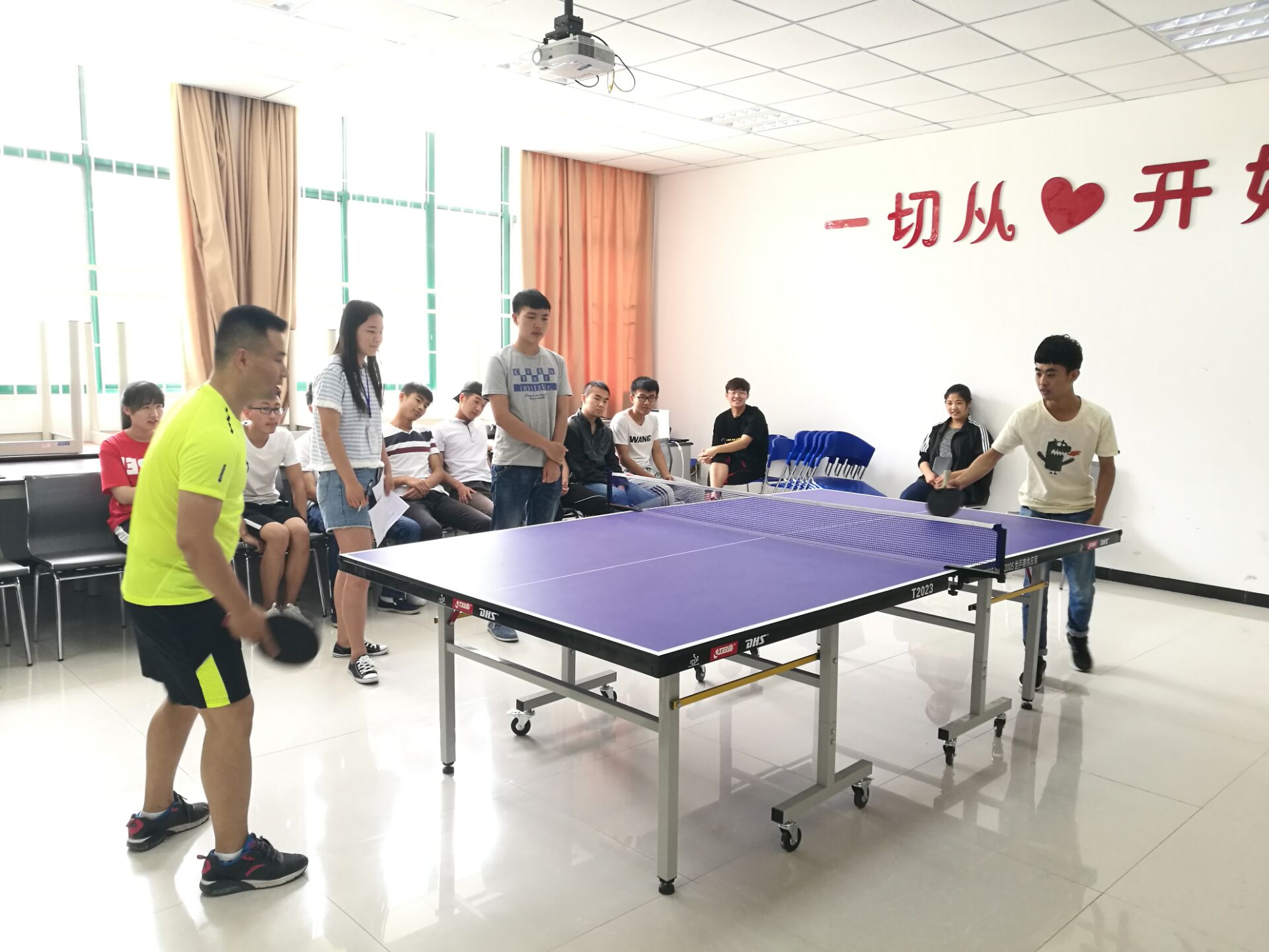 为了丰富师生的校园文化生活,促进师生之间更深入地沟通与交流,构建和谐校园文化氛围、创建平等和谐的师生关系,同时增强大家对国球的了解和乒乓球爱好者之间的交流。校诚信自强联合会于2017年5月19号中午12点半在Jx5114举行了乒乓球师生友谊赛总决赛。我们有幸邀请到学生资助管理科科长董新法老师和校阳光心理联合会指导老师王超老师。
