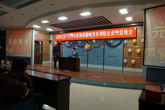 为了增强我校学生的诚信意识,引导学生树立诚实守信、自强自立的人生态度,营造和谐校园文化氛围,由我校诚信自强联合会主办的“诚信校园行”优秀短剧展播暨诚信自强联合会元旦晚会活动于2016年12月29日晚上7点,3号实训楼学术报告厅举行。本次共展播了河南省大学生“诚信校园行”短剧大赛中获特等奖的节目,加上联合会成员自己编排的以诚信自强为主题的节目近20个,集多种舞台表演形式给大家带来一场视听盛宴。本次晚会由精彩的开场视频和激情的开场舞拉开晚会帷幕,以新颖的题材,经典的节目,溶亲情、友情、师生于一体展现在大家面前。