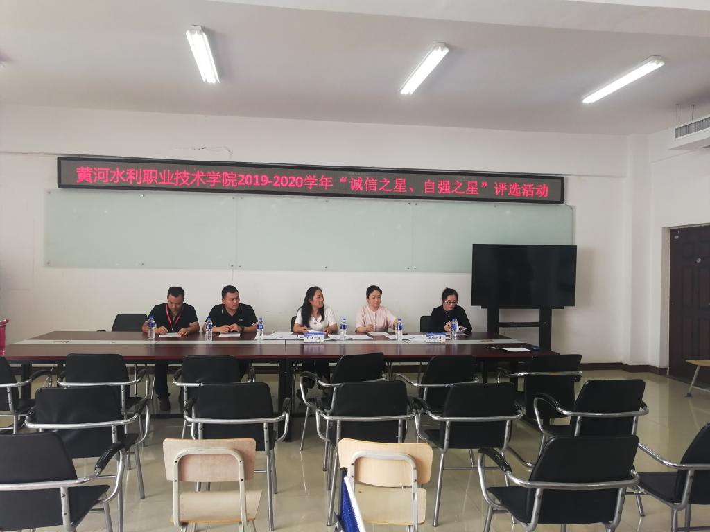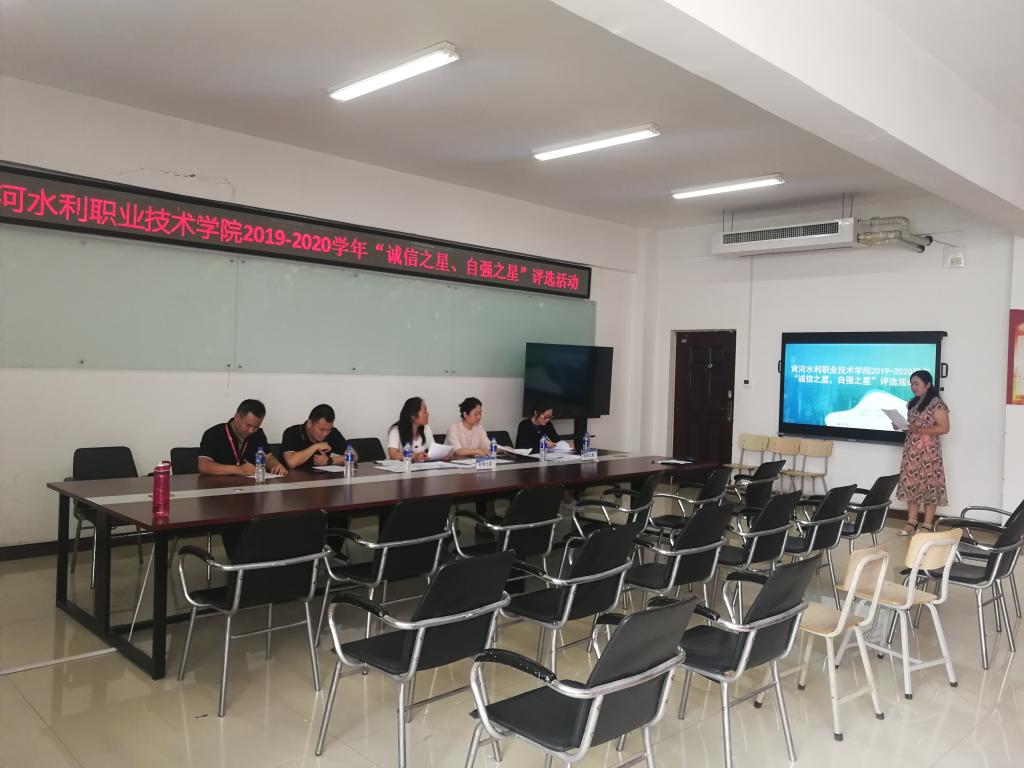 6月24日下午,由我校学生资助管理中心主办、信息工程学院承办的2019-2020学年“诚信之星”“自强之星”评选活动终评环节在5号实训楼5508举行。出席本次活动的评委有党委宣传部副部长王靖、团委副书记耿风、招生就业服务中心副主任万勋、资助管理中心科长董新法、学报编辑部副书记姚芬,活动由信息工程学院陈文静老师主持。