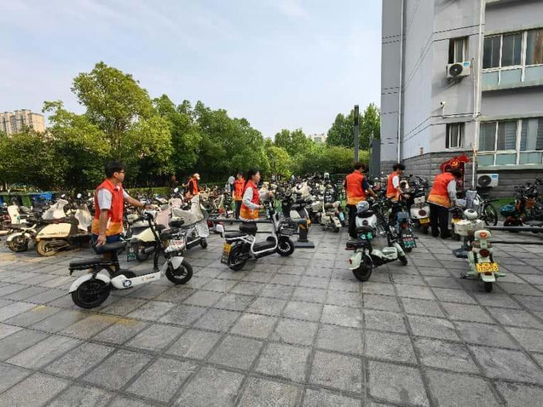 5月28日,“一站式”学生社区党工委组织各学生工作驿站党支部工作站站长开展规范电动车停放志愿服务活动。