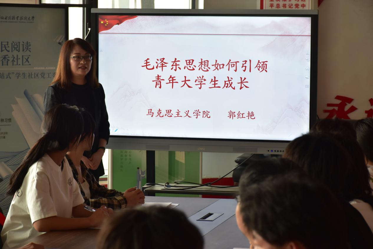 3月25日,为进一步推动思想政治教育深入学生群体,“一站式”学生社区党工委组织开展以“思政导师讲党史”为主题的讲座,邀请思政导师郭红艳,讲述毛泽东思想的时代价值。