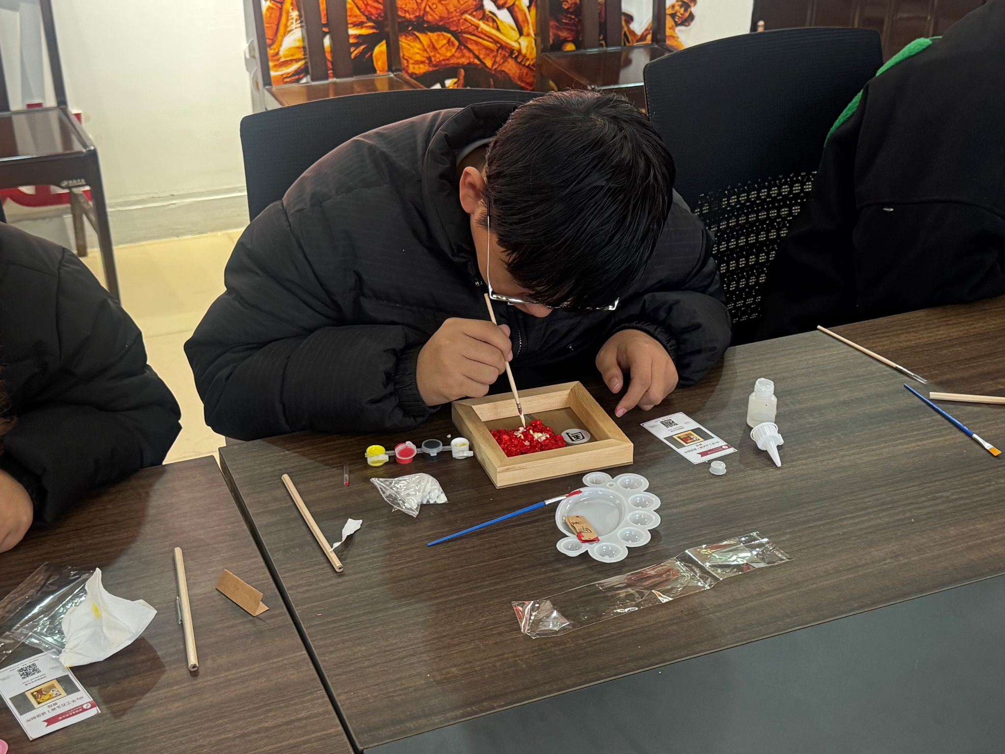 活动现场,教师王嘉琪为学生讲解了黄河文化的精神内核与石头画的创作技巧。学生们用鹅卵石和彩绘,在巧思妙笔下,勾勒出承载黄河精神与价值追求的艺术作品。大家互相交流创作心得,分享对社会主义核心价值观的理解,现场洋溢着浓厚的文化氛围与创作热情。