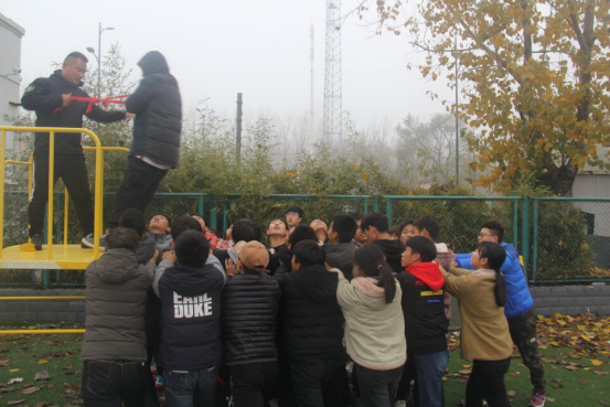 11月24日上午八点半举行开班仪式,素质拓展队指导老师郭豪杰指出素质拓展师在拓展培训中主要负责拓展培训的策划、组织和管理,负责带领学员进行拓展项目的体验、分享和总结点评,要求所有参训学员服从安排、刻苦训练,认真学习、提高能力。随后,两位教练对学员进行素质拓展理论培训、团队组建的方法与练习、教练员分享技巧与练习培训。11月25日,训练的第一个热身游戏培训是“激情节拍”展现了团队的协调合作的能力。接下来又进行了“一根手指的力量”、“松鼠搬家”热身游戏培训,通过这两个游戏培训,加深了同学们之间的默契度,展示了团队的力量。12月1日,训练的首个项目是“无敌风火轮”,培养了团队成员的一致性和密切合作的团队精神。然后依次进行了“踊跃硫酸池”“翻越王屋山”等地面项目的体验与培训。12月2日,重点进行了“信任背摔”项目培训,这是一个可以增强团队凝聚力、增加团队沟通力的项目。每一个队员都亲身体验了信任与被信任的感受。