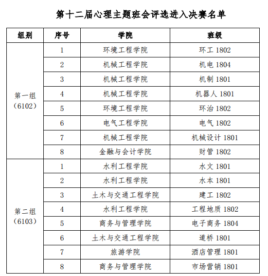 此次心理班会比赛活动通过室外素质拓展、室内感悟以及分享等方式来进行,各参赛人员以PPT展示来对班级心理班会的进行以及成果进行现场解说。各位解说员将实际的问题向在座的各位同学娓娓道来,通过各个环节留下的照片,融入PPT做成“全家福”展现在各位同学面前,现场响起阵阵掌声。通过对活动策划、活动总结、现场解说等方面的综合评价,最终16个班级晋级到了决赛名单,现公布如下: