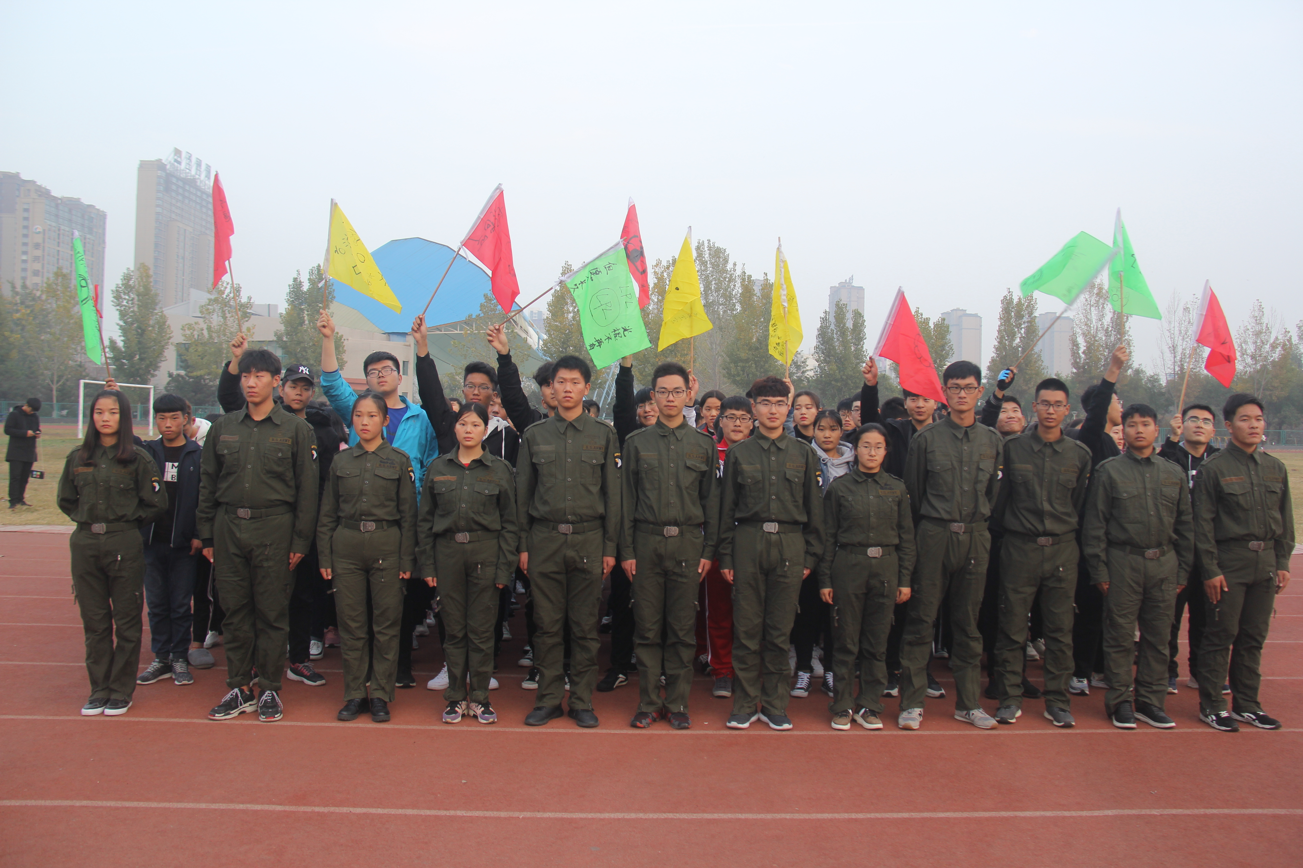 校素质拓展队队员和受训队员合影留念