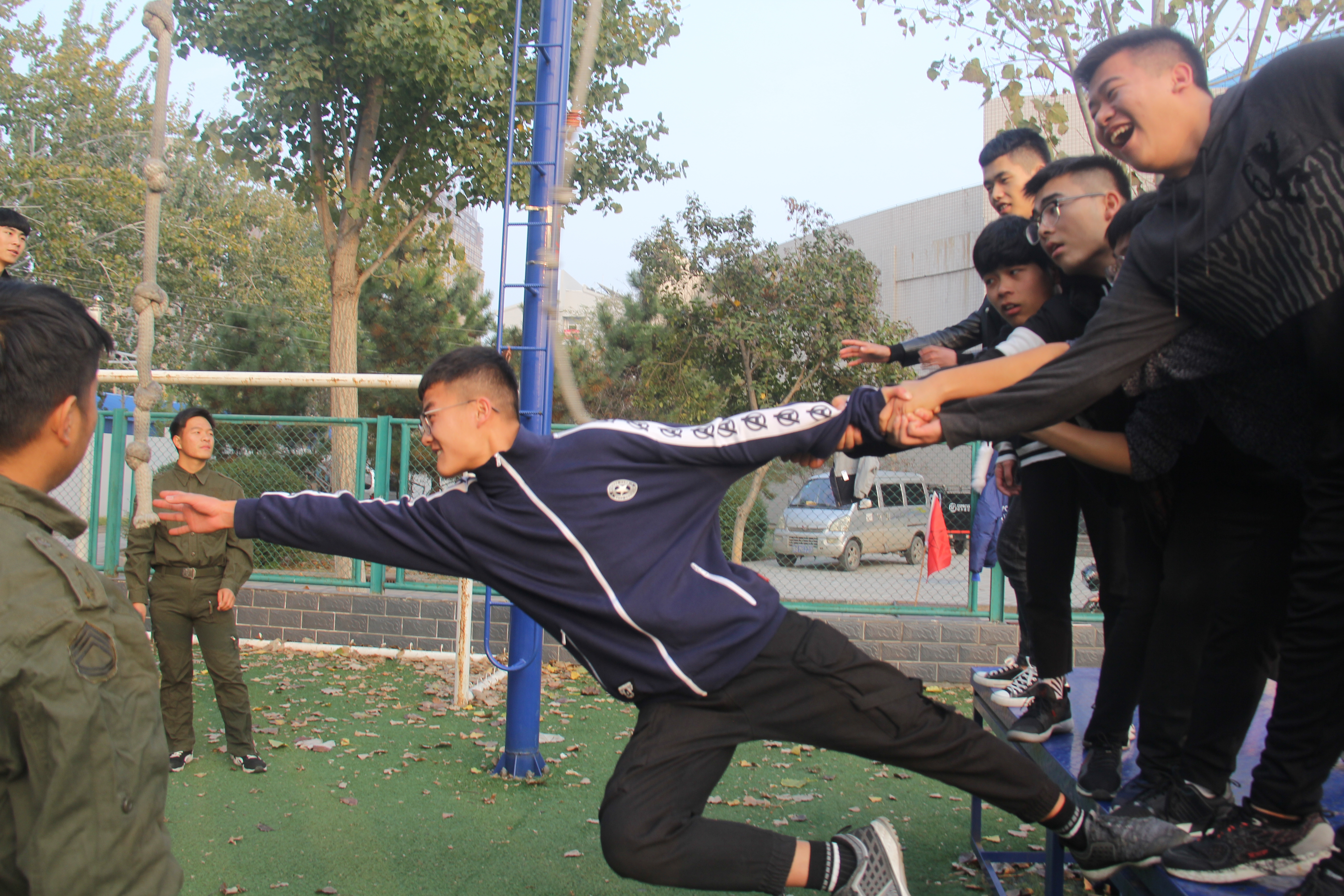 11月11日,校心理素质拓展队组织所有参加培训的学员在西北体育场素质拓展基地进行了心理素质拓展训练。在团队建设之后,组织学员们体验了“有轨电车”、“穿越电网”、“十人九足”、“搭桥过河”和“勇跃硫酸池”五个素质拓展项目,这些项目单纯依靠某一位或几位同学的努力是不可能成功的,只有大家齐心协力、相互配合,才能在规定的时间按正确的方式完成任务。本次活动尤其重视体验结束后的分享环节。每项活动结束后,在教练的引导下,学员之间相互讨论、分享活动过程中内心的感动和感悟,在分享中大家加深了对活动的认识,体验到了合作、包容、团结在集体活动中的重要作用。通过心理素质拓展实训让心理委员们学会了组织班级开展心理素质训练的方法,从而在未来心理健康教育工作中能发挥更加重要的作用。