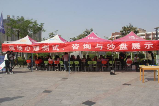 本次活动的测评部分由校阳光心理联合会负责,现场问卷施测人员进行提前培训,使他们了解问卷的结构、问卷目的和问卷结果解释。现象测评中,同学们可以通过心理抗压能力、性格特征、职业潜能、手机依赖、气质、情绪、智商等问卷测试,使我校大学生了解自身特点,发现自身可能存在的心理困惑。对问卷或者自身心理有任何困惑的同学,通过和心理咨询师面对面交流,了解自身问题,评估心理健康状况。现场中很多同学对“沙盘游戏”感兴趣,向老师预约了体验时间,从沙盘中了解自我,了解潜意识。