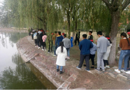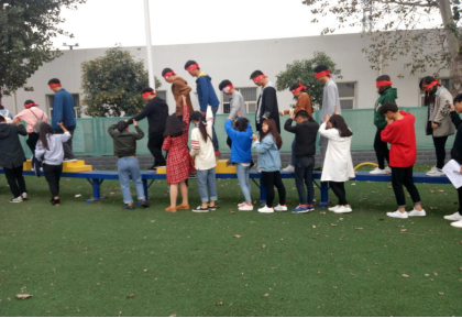 本次活动以“信任盲行”为破冰游戏,通过随机抽签的形式,学生两个一组,扮演盲人和聋哑人,相互搀扶,共同帮助,穿过草丛、树林、石板、河沿等屏障安全到达西北体育场。通过此活动,旨在迅速打破陌生人之间的隔阂,建立人与人之间的连接,学会像关心自己的眼睛一样关心伙伴。活动正式开始后,根据社团部门和实际情况,分成四队,每队选出队长和副队长,为了增进同学们之间的相互了解,随后各个队长组织队员之间进行“滚雪球”式的记名字方式,鼓励同学们之间相互熟悉,迅速认识。在相互了解的基础上,进行“十人九足”的比拼,20多个人通过丝带捆绑在一起,共同进步,刚开始走一步都是困难的,但是经过不断的调整和磨合,全体队员能够齐心协力,共同到达终点!