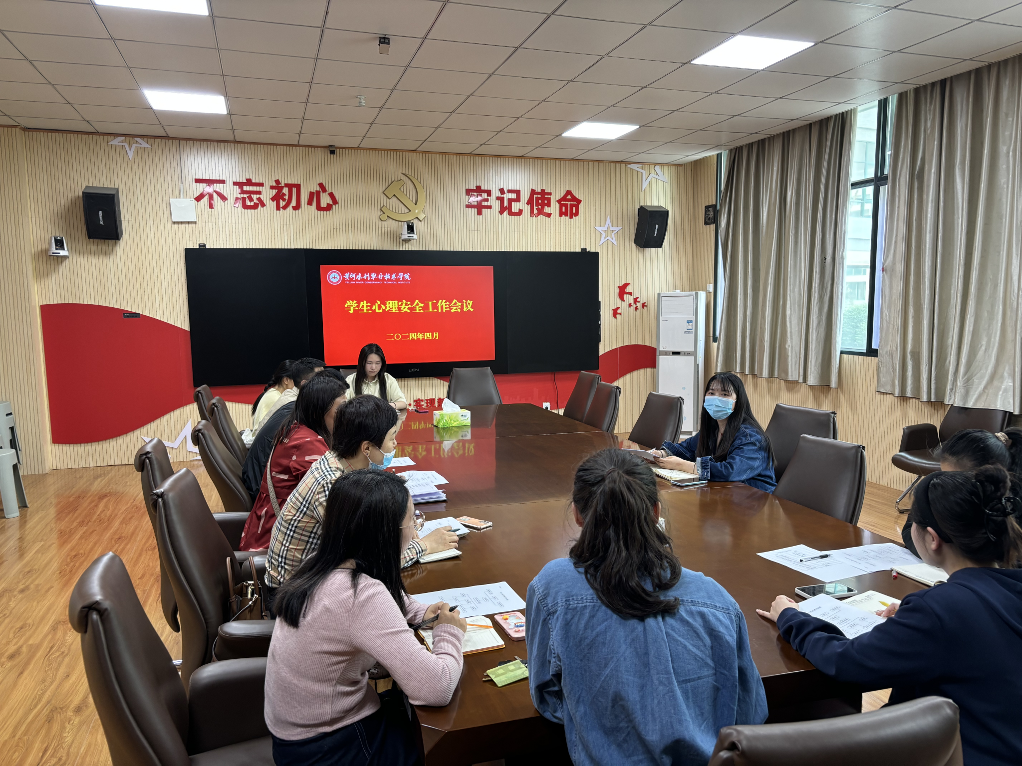 为切实做好我校学生心理危机干预工作,全力维护学生心理健康和校园心理稳定,保障春季心理普测后约谈及后续工作的高质量开展,4月24日,心理健康教育中心在学生处会议室召开心理安全工作会议。学生处心理健康教育中心全体成员、各学院心理指导老师参加会议。