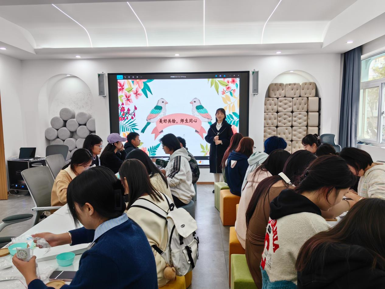 “巧手润心——陶瓷名画DIY”团体辅导活动中,王昊老师为同学们详细讲解了色彩心理学与手工活动是如何相互影响的,阐释了色彩搭配之妙理,揭示了手工创作的奥秘。通过理论与实践相结合的方式,丰富了同学们的心理学知识,提升了同学们的动手能力,实现了知行合一、润心育人。