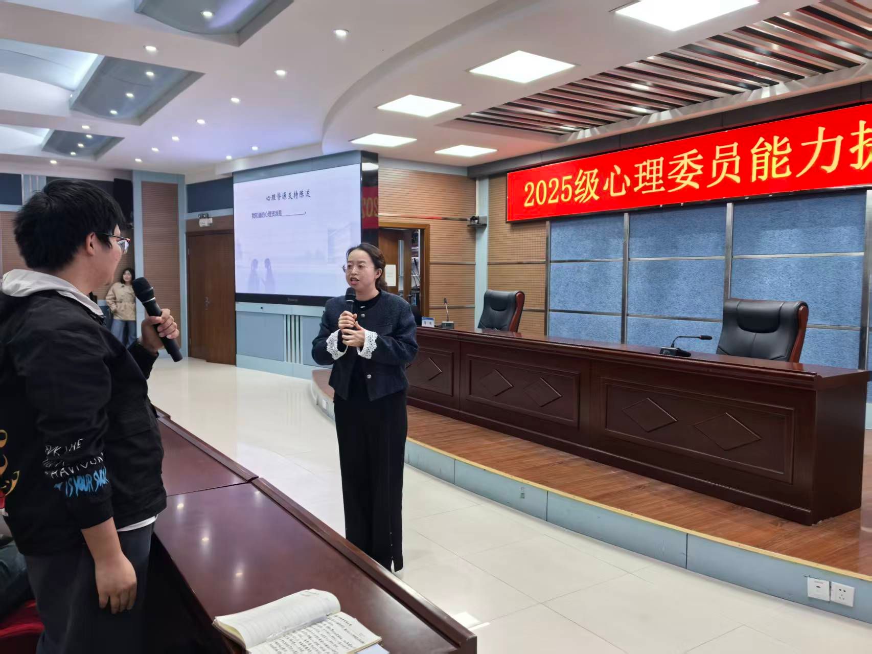 为进一步加强心理委员队伍建设,充分发挥班级心理委员的关键,提升我校心理危机干预水平,深化心理育人工作,11月18日下午,学校特邀开封文化艺术职业学院心理健康教育中心副主任苗瑞于在3号实训楼报告厅举办心理委员专题培训,2025级心理委员、校阳光心理联合会共300余名成员参加培训。