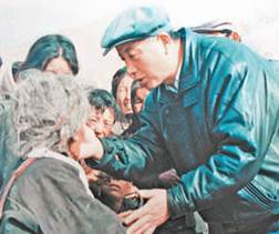 1992年,拉萨市墨竹工卡等县发生强烈地震,孔繁森在羊日岗乡的地震废墟上,还领养了3名藏族孤儿——12岁的曲尼、7岁的曲印和5岁的贡桑。收养孤儿后,孔繁森生活更加拮据,为此,他曾3次以“洛珠”的名义献血900毫升,900毫升的鲜血蕴含着孔繁森对藏族孤儿深深的爱。