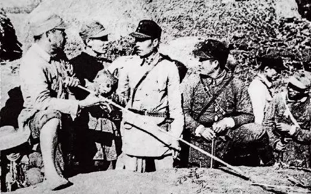 彭雪枫(左三)在一次战斗中做总攻指挥