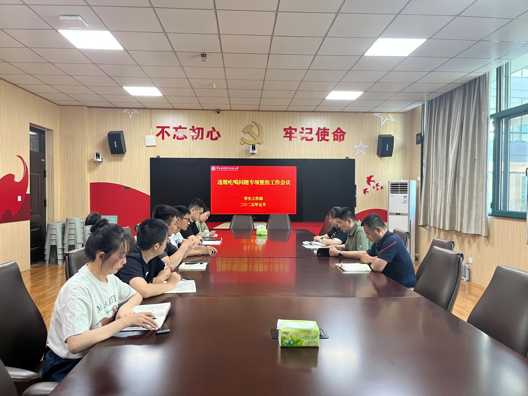 5月20日,学生工作部召开违规吃喝专项整治工作会议,旨在进一步加强党风廉政建设,营造风清气正的校园环境。会议由学生工作部部长商坤主持,部门全体同志参加会议。
