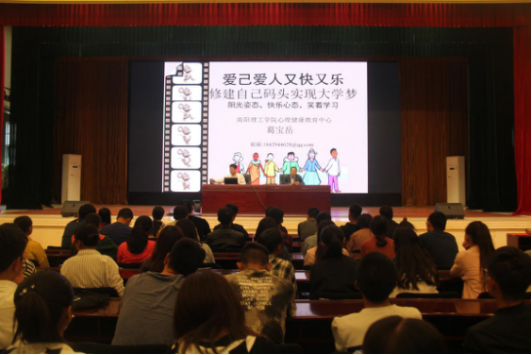 为促进2017级新生转变角色,尽快适应大学生活,9月27日上午,我校邀请南阳理工学院葛宝岳教授在学生活动中心开展以“爱人爱己,又快又乐地度过大学生活——修建自己的码头”为主题的新生心理健康专题讲座,讲座由心理健康教育科科长郭豪杰主持,700余名大一新生参加。