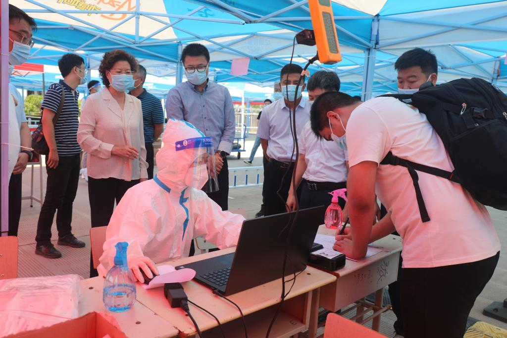 校党委书记周保平带领相关部门负责人实地查看和指导返校复学各项工作,按照入校流程,先后前往入校等候区、登记报到区、行李消杀区、餐厅和宿舍等区域,围绕信息查验、体温检测和核酸检测等重点工作进行了督导检查。她对学生返校流程的顺畅有序给予了充分肯定,对工作人员的严谨细致和辛勤付出给予了高度赞扬,叮嘱学工队伍一定要履职尽责、严守关口,确保学校防疫成果。
