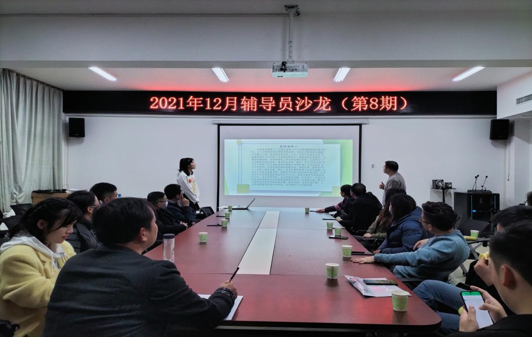 2021年12月10日下午15:00由商务与管理学院承办的以“‘双高’背景下辅导员如何在加强学风建设中发挥作用”为主题的第八期辅导员沙龙在实训楼5420成功举办。本次沙龙由商务与管理学院20级辅导员陈一主持,共有来自各院的22名辅导员代表参加。