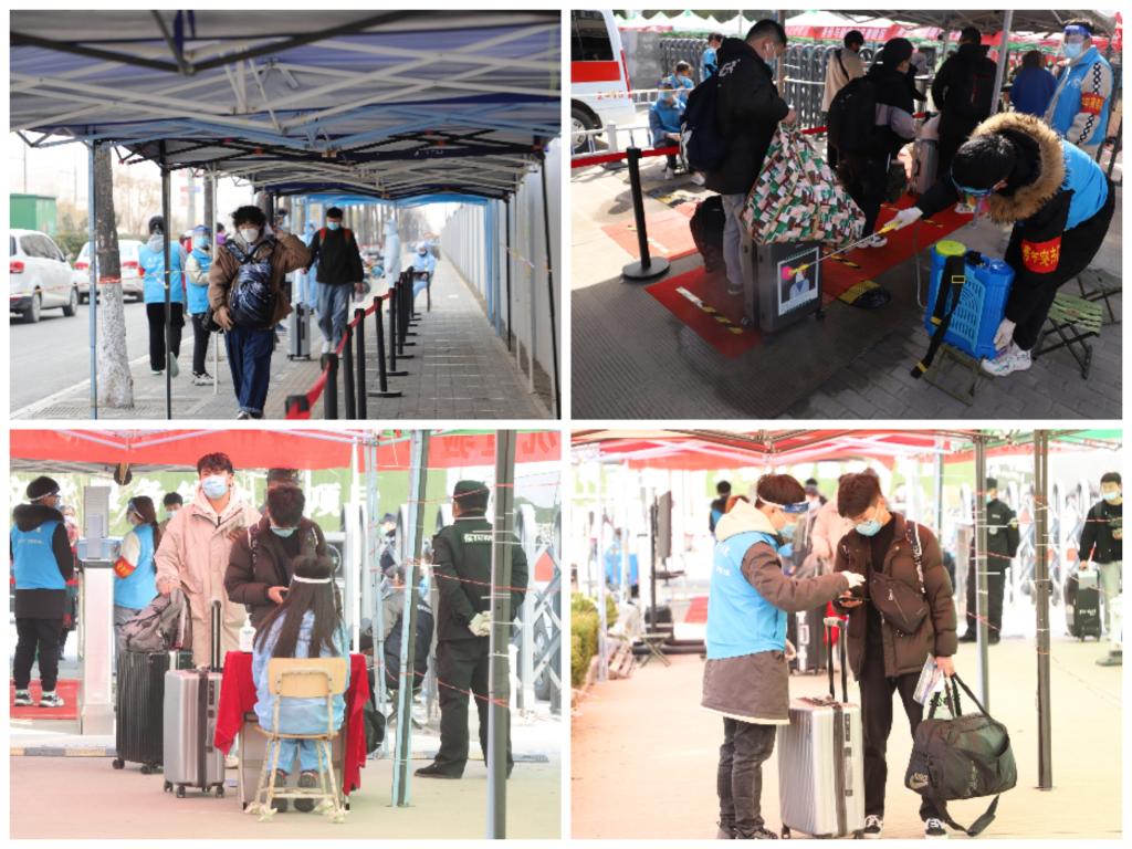 学校高度重视春季返校复学工作,制定了详细的返校复学工作方案,在返校复学前进行了学生信息的详细摸排及返校途中安全知识宣传和校园消杀工作,并进行了全过程全要素实境演练和多途径、分批次、全覆盖的人员培训。学生到校后,在经过严格的体温检测、行李消杀、身份查验、48小时内核酸检测阴性证明、健康码、行程码及申请返校承诺书查验、再次核酸检测一系列流程后,进入学生宿舍,在入校核酸检测结果确定阴性后,才能在校园内活动。在返校复学工作中,学工队伍、学生志愿者积极投入工作,认真负责、热情服务,让返校学生倍感亲切和温暖。学生在工作人员及志愿者的引导下,积极配合各项工作,报到过程秩序井然。