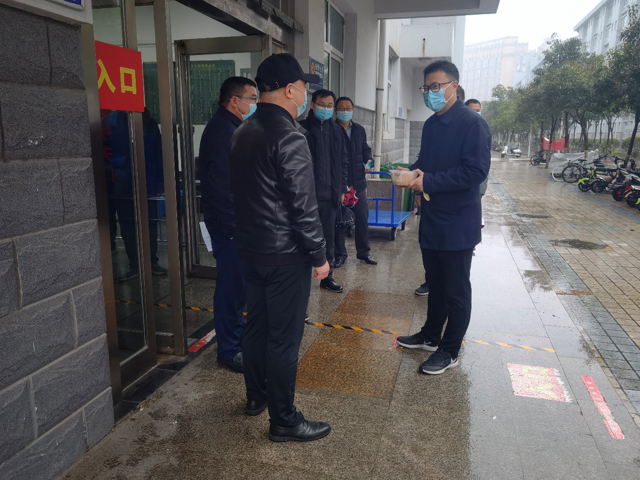 3月25日中午,校党委副书记、校长胡昊在学生处、团委、保卫处、后勤管理服务中心、机械工程学院、旅游学院等单位负责人的陪同下,深入学生宿舍检查指导校内生活物资配送工作,并慰问一线学工人员和志愿者。