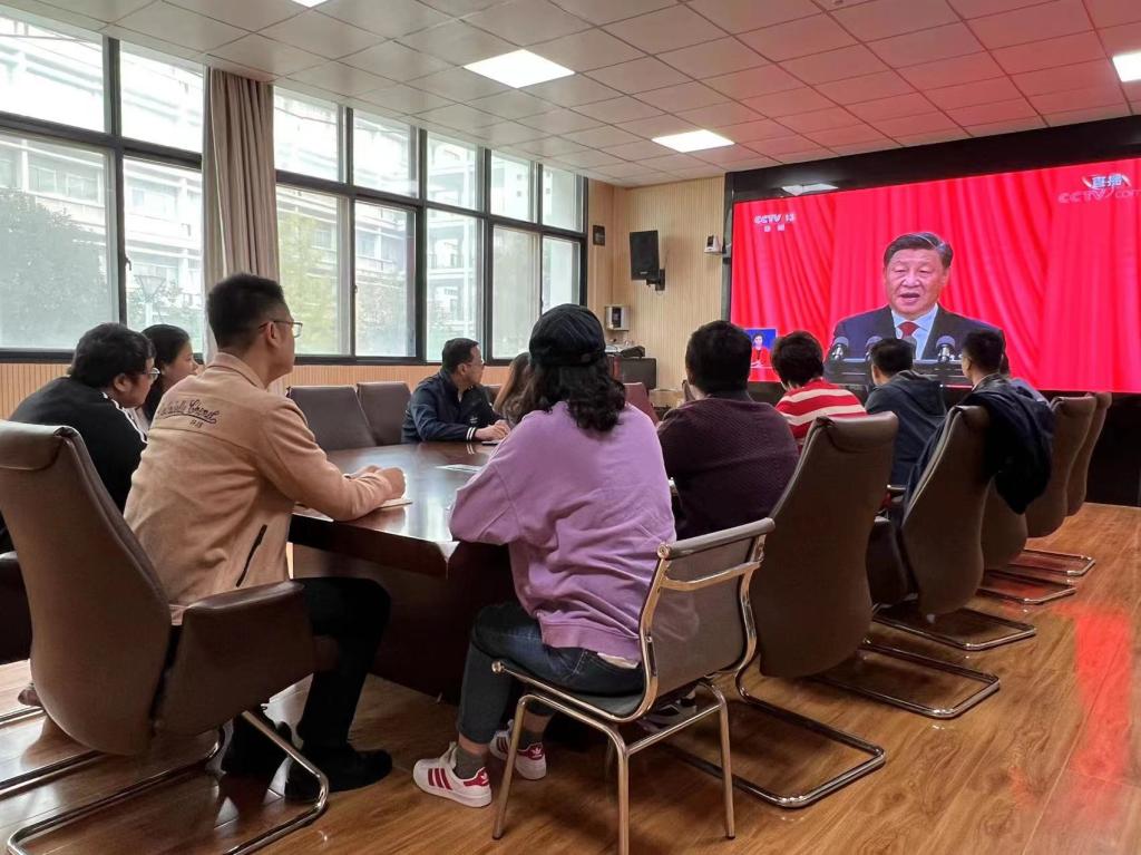习近平总书记的报告激荡群情、催人奋进,参与集中收看的师生全程仔细认真聆听,深入学习领会,报告结束时,也随着现场代表们一起热烈鼓掌,表达对这次空前盛会的祝贺,表达对习近平总书记的高度信赖、坚决拥护和衷心爱戴。