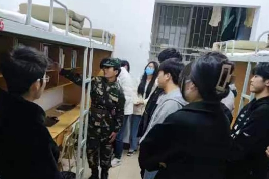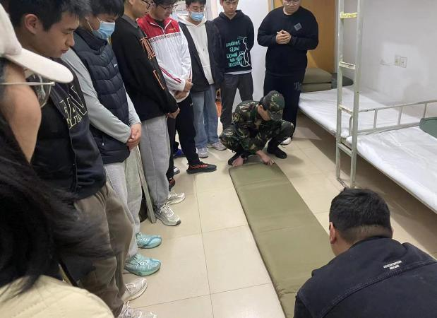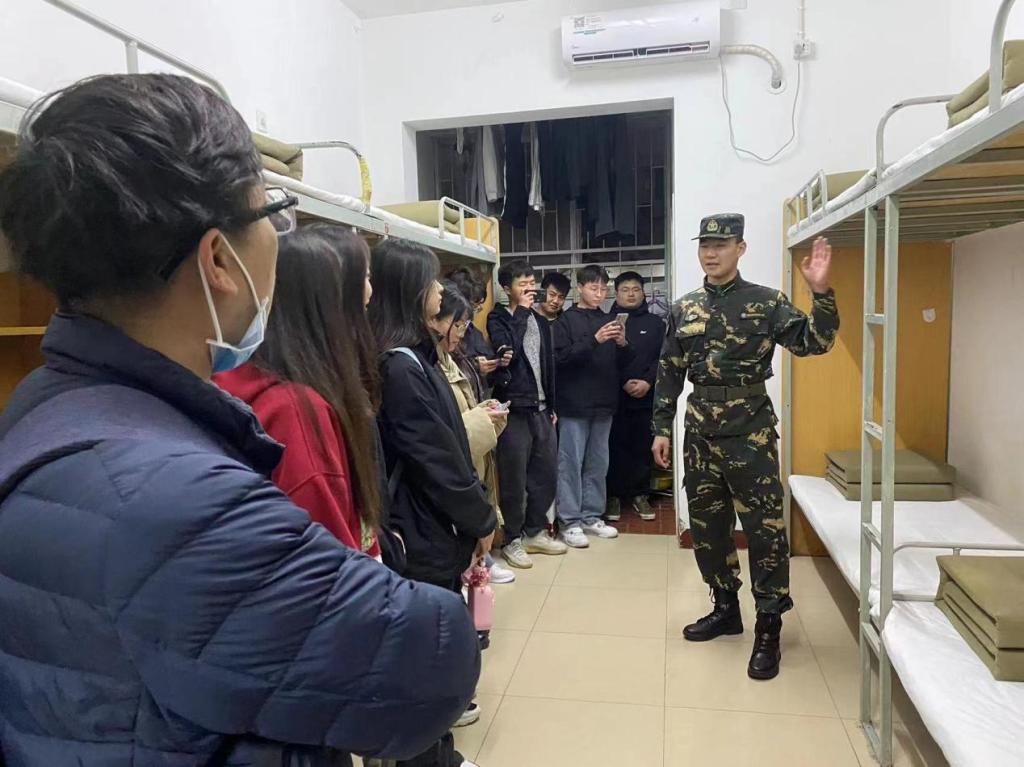 参观期间,国防教育教导大队队员向学生代表讲解并示范了被褥整理、宿舍清洁、物品摆放等方法,针对参观同学提出的相关问题进行了解答。