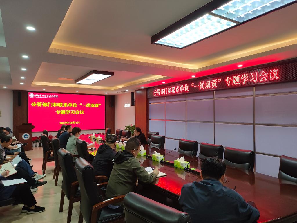 为进一步推进党风廉政建设,强化“两个责任”的落实,10月4日,副校长周志琦主持召开分管部门和联系单位履行“一岗双责”专题学习会。“一站式”学生社区党工委、学生工作部(学生处、学生资助管理中心)、教师工作部(人事处、教师发展中心)、保卫部(保卫处、武装部)、后勤服务管理中心、测绘工程学院和基础部全体中层干部参加会议。