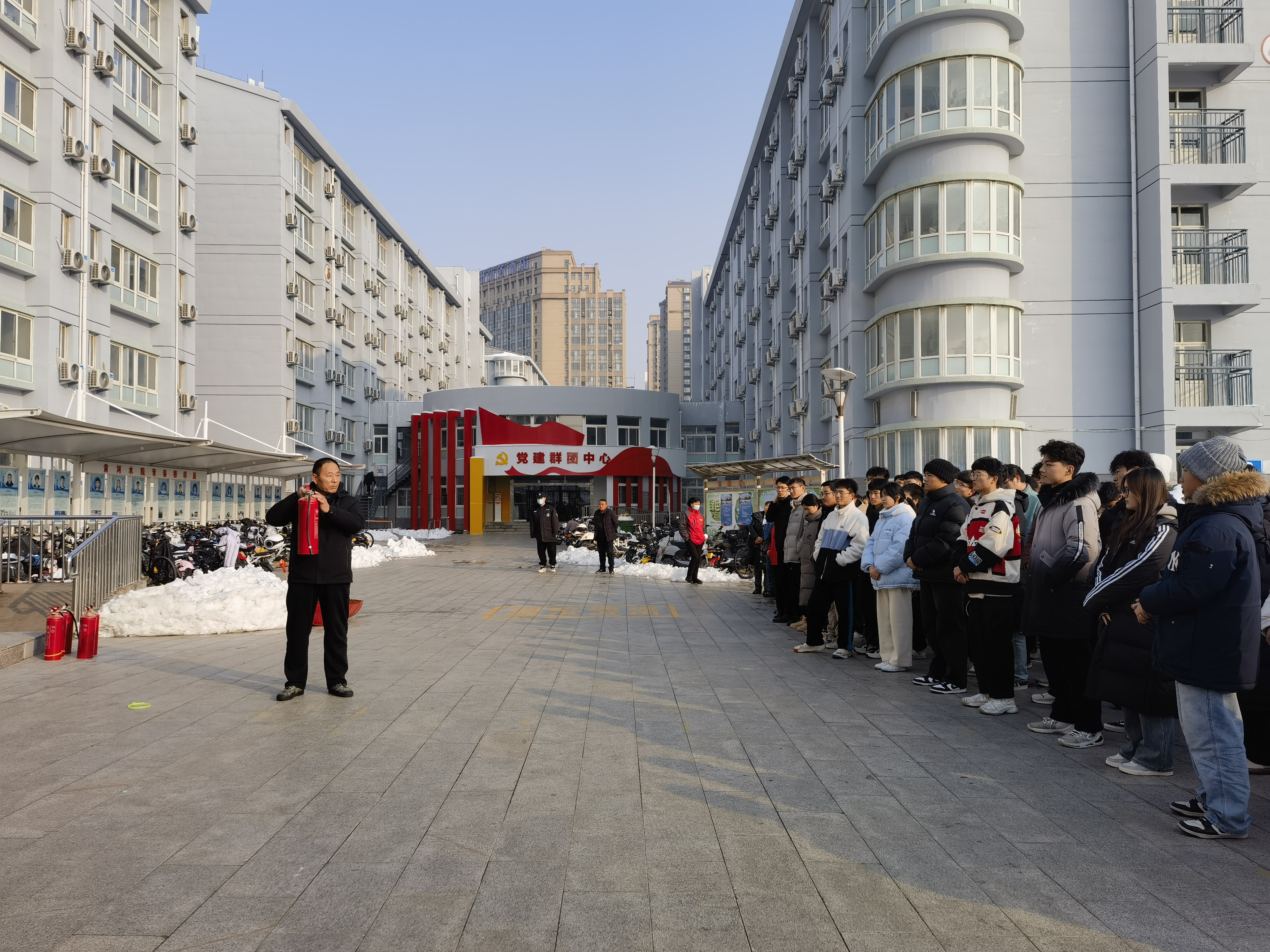 演练分为宣传讲解、灭火器使用演练和公寓逃生疏散演练三部分,宿管科科长徐嘉伟首先宣传讲解了冬季宿舍消防安全注意事项,严禁使用大功率电器、电热设备、明火设备,禁止在公寓内吸烟或携带火种进入,鼓励学生严于律己、相互监督,共同维护公寓消防安全。