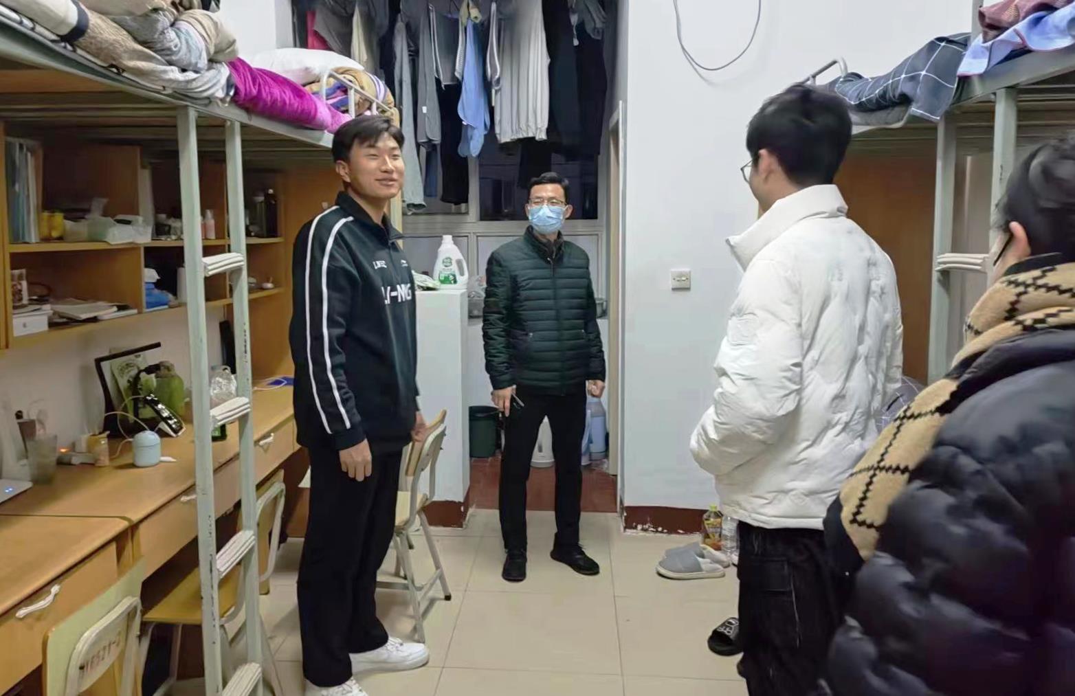 12月24日晚,校党委书记周保平带领副校长周志琦和党政办公室、学生工作部、保卫部、后勤管理服务中心等部门负责人与各学院党总支书记、副书记及辅导员走访学生宿舍,进行冬季安全检查。