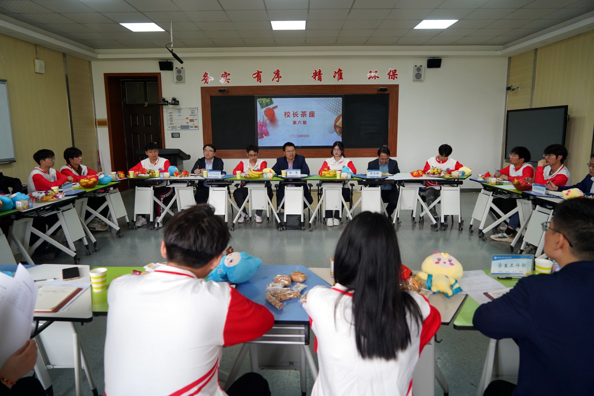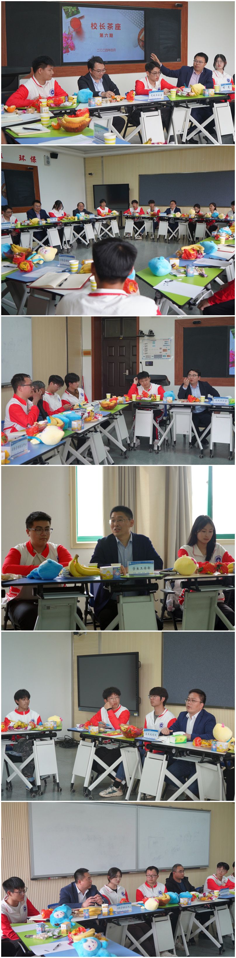 4月11日,我校在7号教学楼JX7212B教室举行第六期“校长茶座”。校党委副书记、校长胡昊与青年学生代表围桌而坐,面对面讨论学校发展、学习生活、校园秩序管理、后勤生活保障等问题。副校长周志琦,党政办公室、学生工作部、发展规划处、后勤管理服务中心、资产经营管理中心等部门负责人及来自各学院的21名学生代表参加了本次活动。