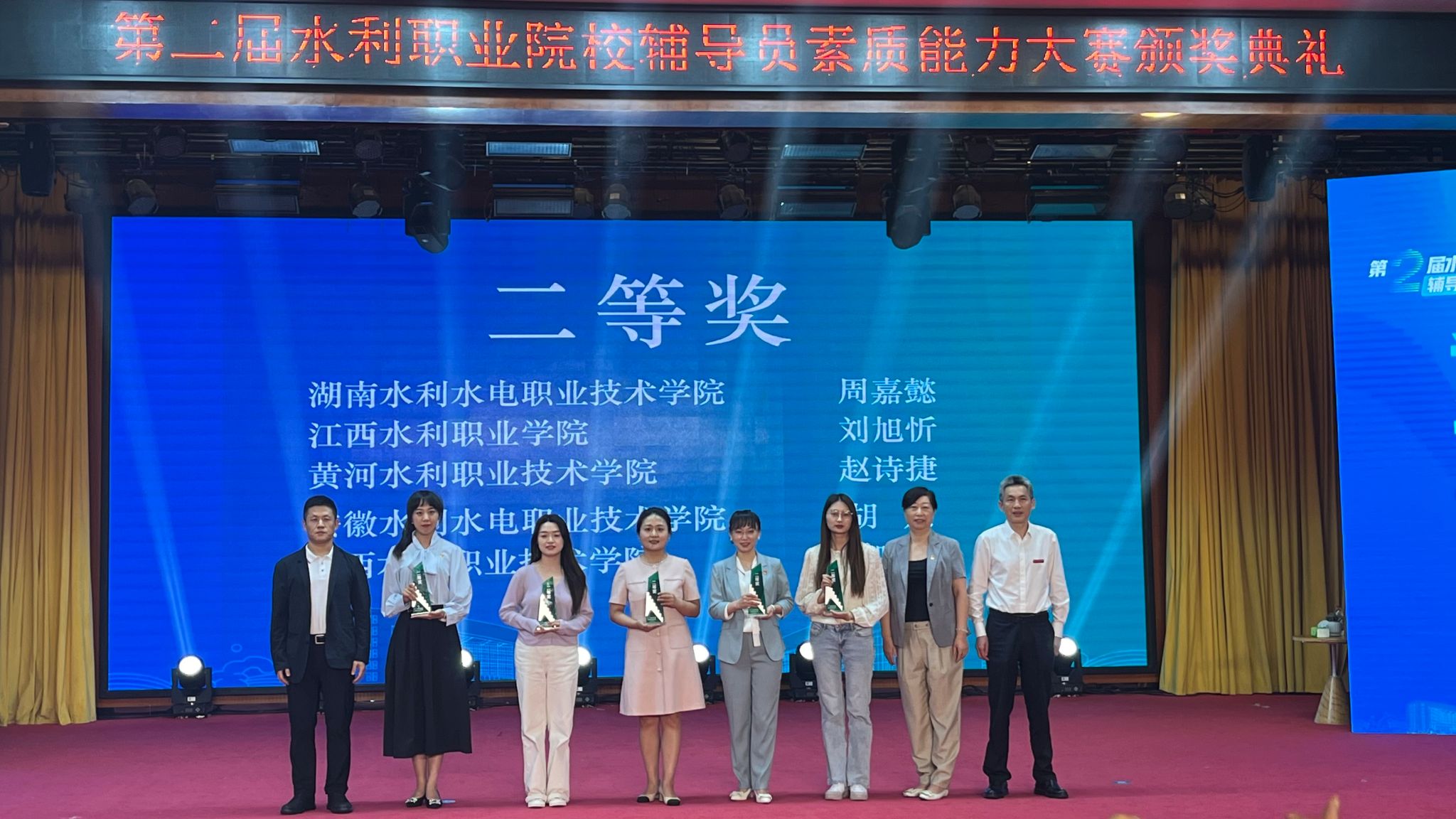6月6日-7日,由中国水利教育协会主办的全国第二届水利高职院校辅导员素质能力大赛在浙江同济科技职业学院举行,来自全国25所水利高职院校的辅导员同场竞技。我校水利工程学院辅导员赵诗捷在比赛中表现出了良好的精神风貌、扎实的业务功底和过硬的综合能力,以总成绩第六获得大赛二等奖。