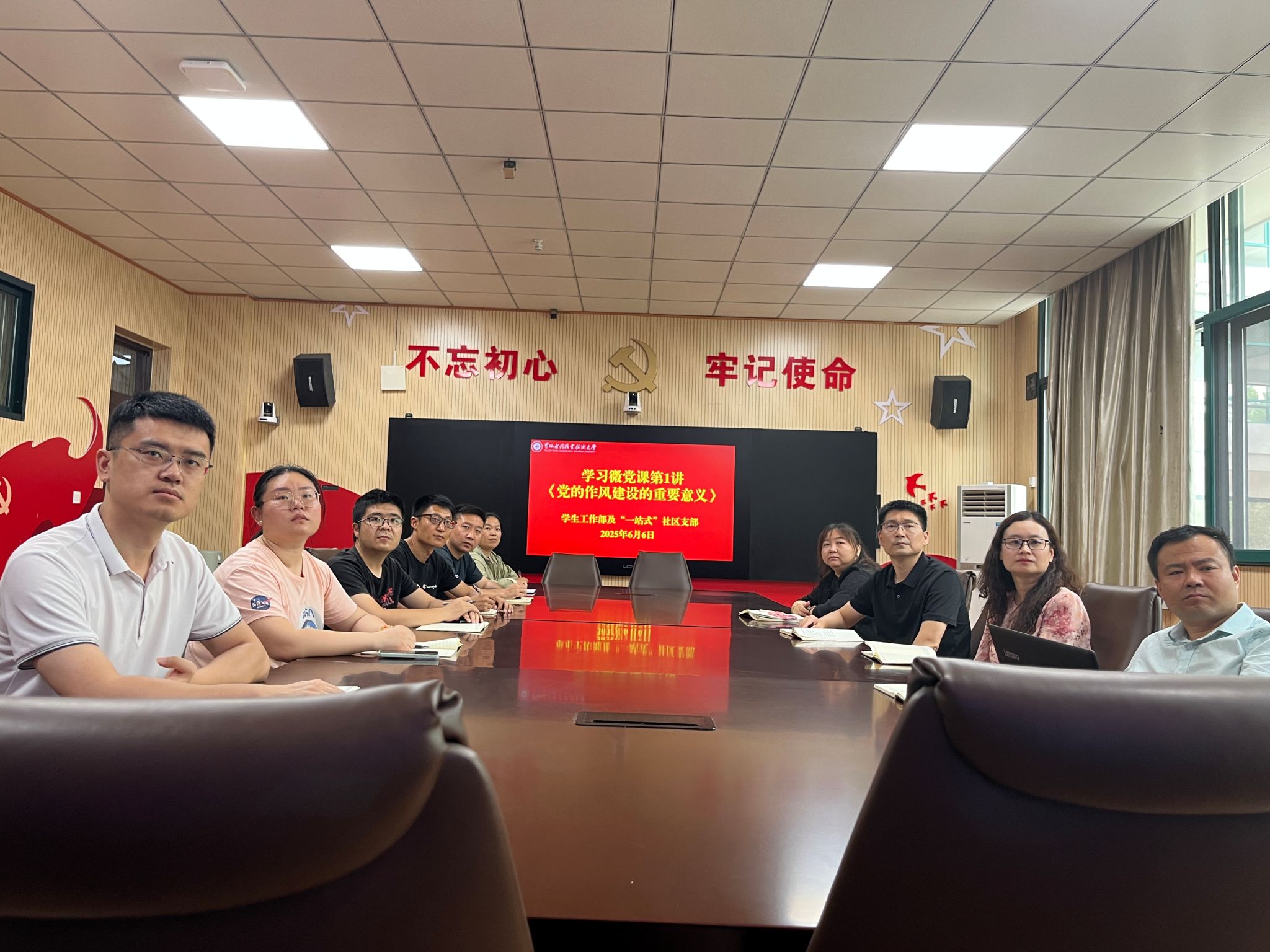 为加强党员作风建设,提升党性修养,6月6日,学生工作部及“一站式”社区支部全体党员,在党员活动室JX5111集中收看了2025年高校党组织示范微党课展播第1讲《党的作风建设的重要意义》。