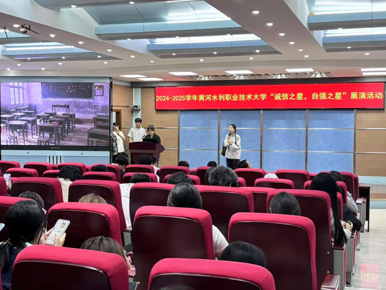 本次活动历时两个月,经过个人申报、学院初审,共有26个作品参与展演环节。通过情景剧、群诵、演讲等形式再现学生诚信、自强的励志故事,现场感染力强。同学们在轻松愉快的环境中接受诚信教育,同时有效激发青年学子的责任感与使命感。