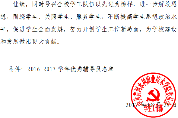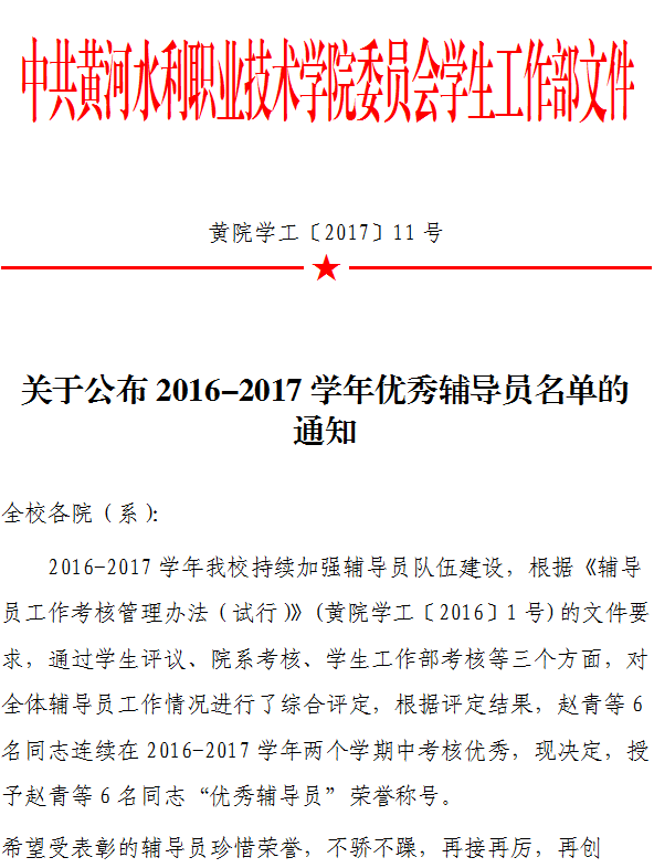 关于公布2016-2017学年第二学期辅导员考核结果的通知