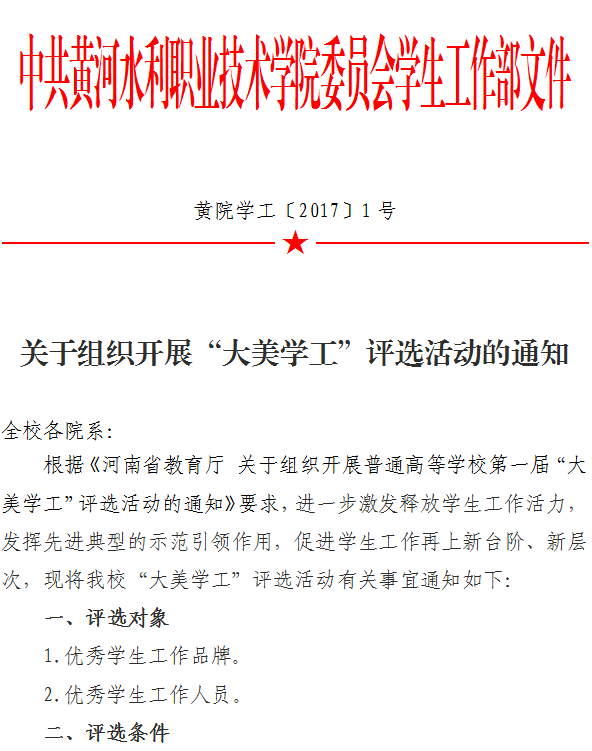 关于组织开展“大美学工”评选活动的通知