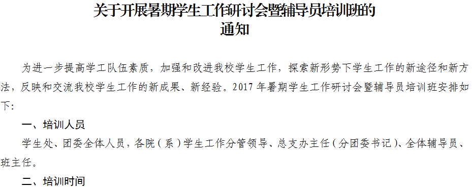 关于开展暑期学生工作研讨会暨辅导员培训班的通知