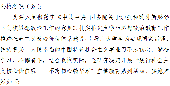 关于开展“践行社会主义核心价值观——不忘初心铸华章”宣传教育系列活动的通知